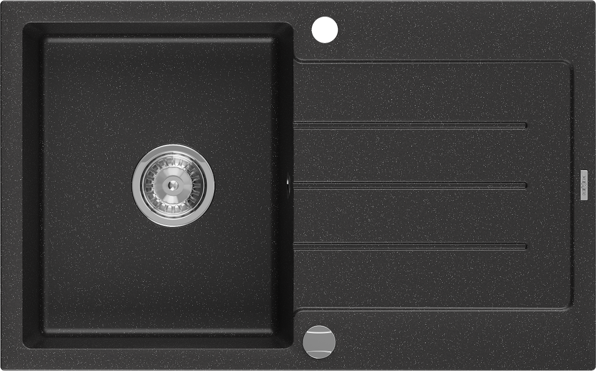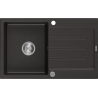 Mexen Bruno 1-medencés gránit mosogatótálca csepegtetővel 795 x 495 mm, fekete/ezüst metál, króm szifon- 6513791010-73