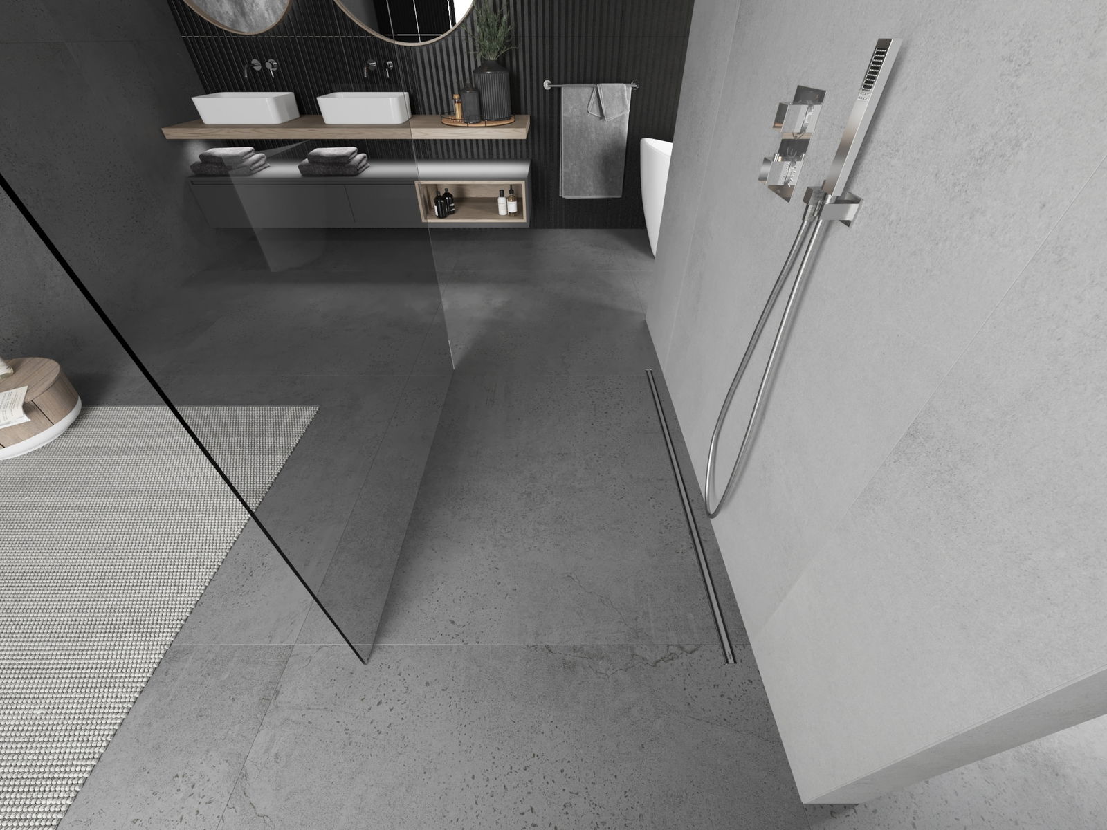 A terméket igény szerint felszerelheti akár a zuhanytálcára, akár közvetlenül a padlóra. Az univerzális szerelési mód lehetővé teszi a termék alkalmazkodását különböző típusú fürdőszobákhoz és térbeli konfigurációkhoz.
