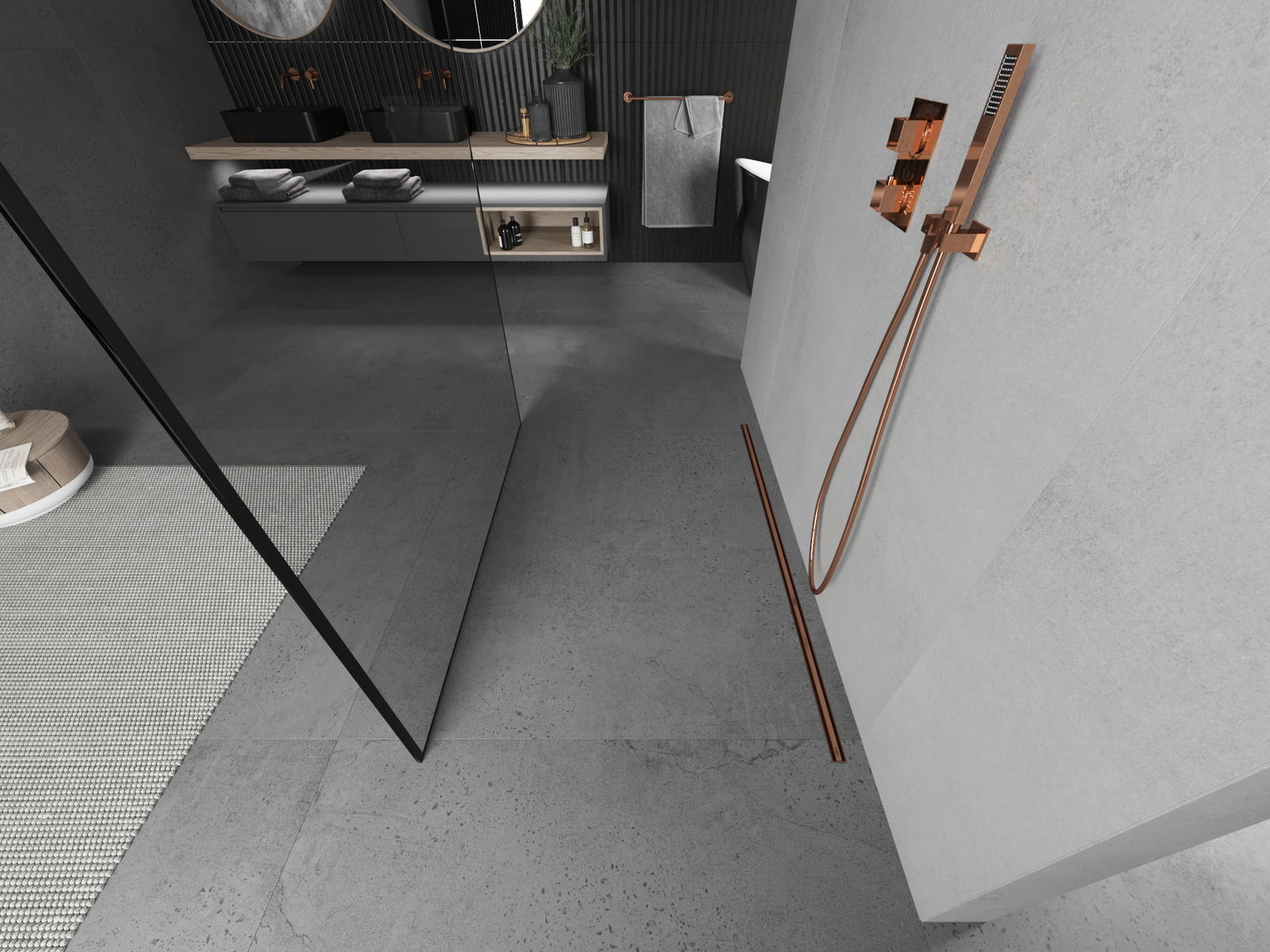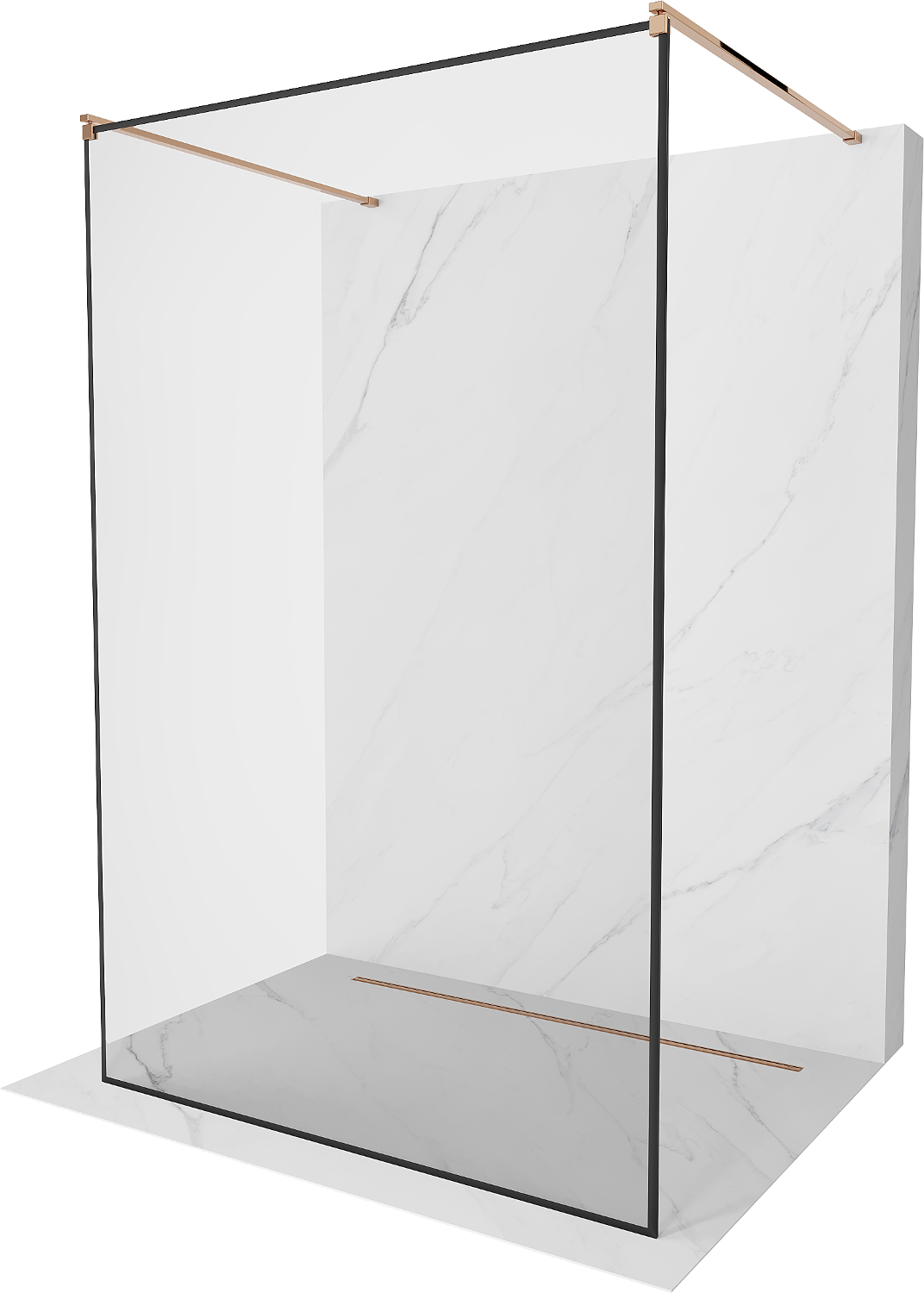 Mexen Kioto szabadon álló zuhanyfal 150 x 200 cm, fekete keret 8 mm, rózsaarany - 800-150-002-60-70