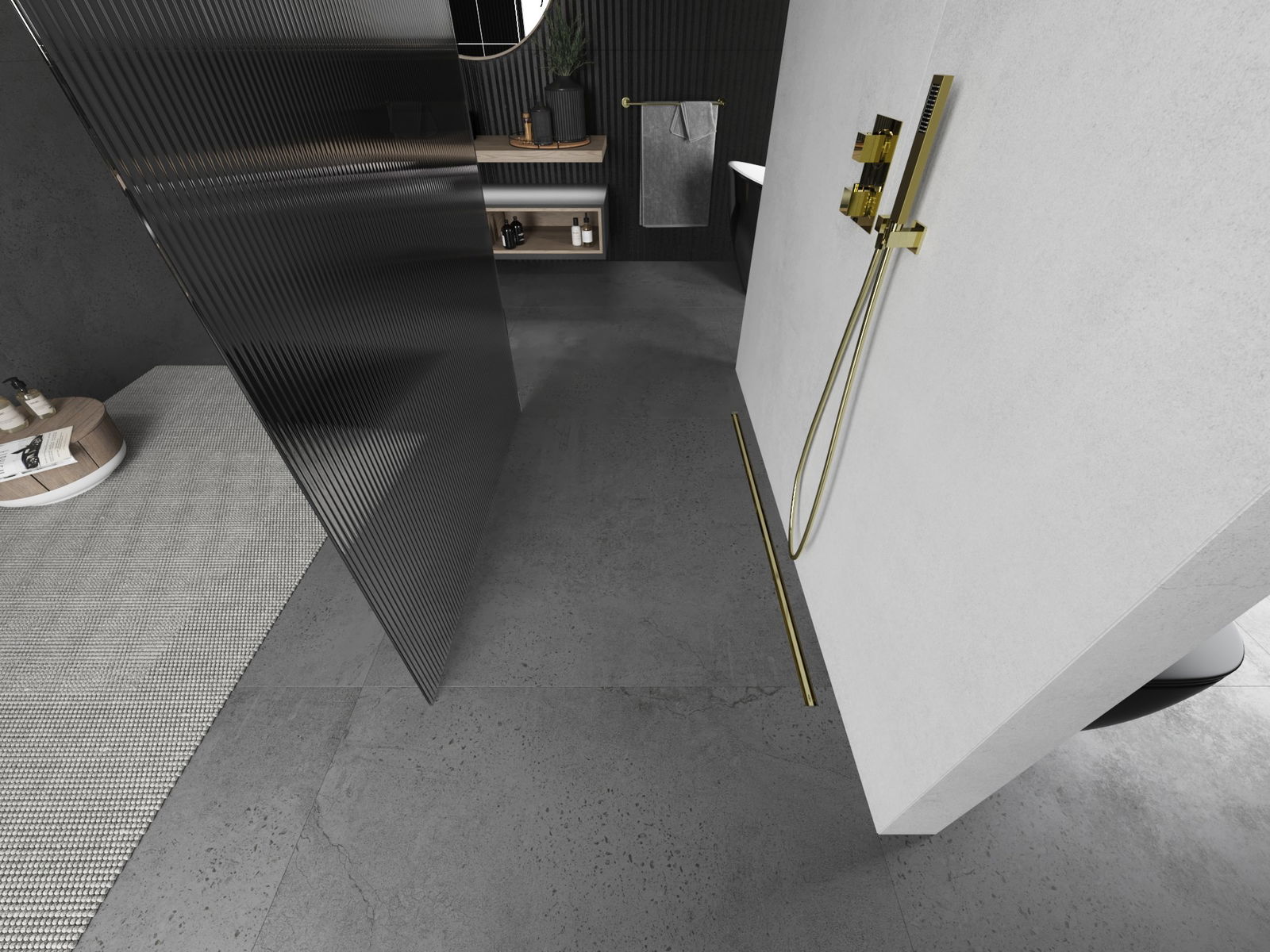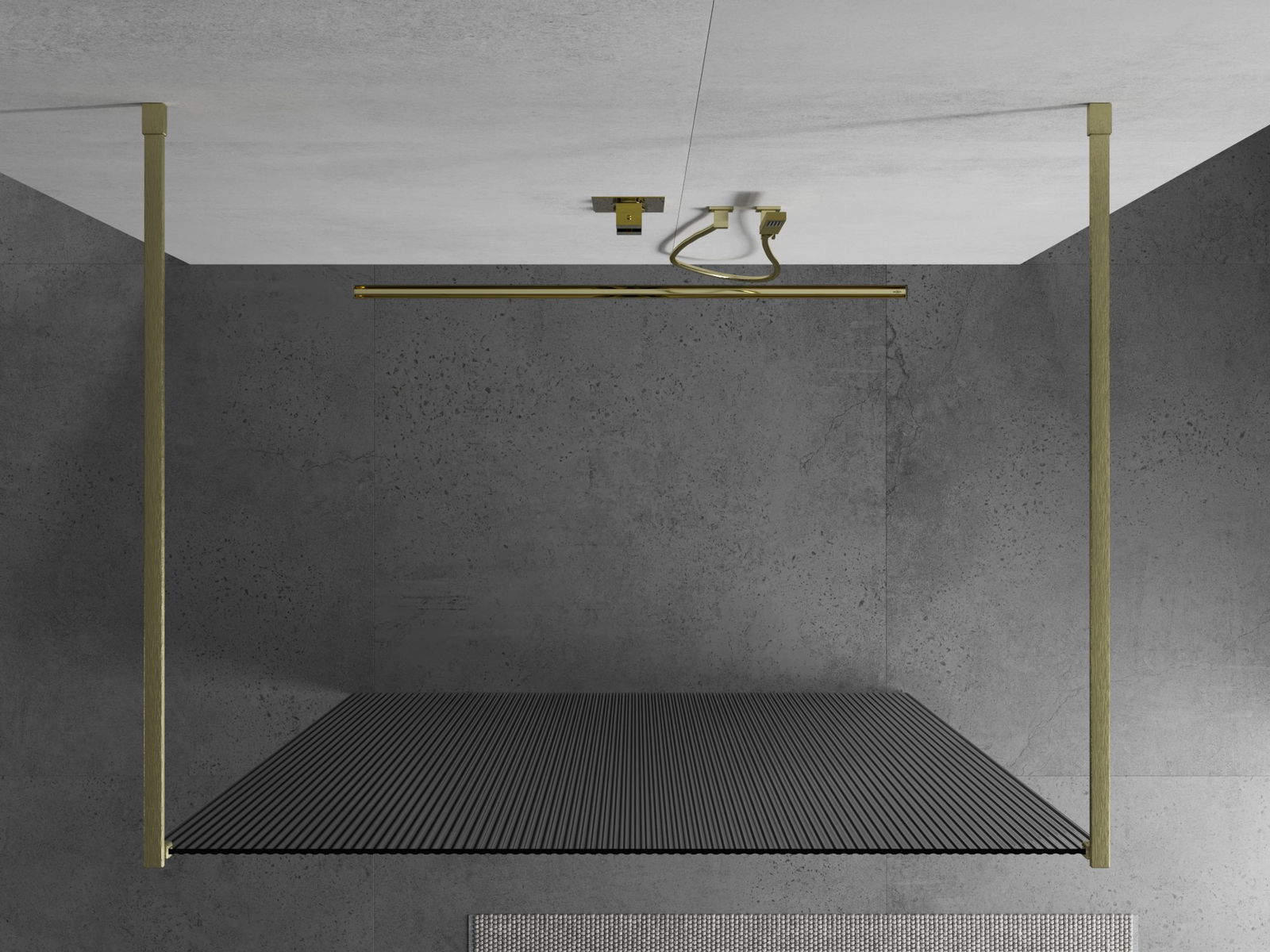 Mexen Kioto szabadon álló zuhanyfal 130 x 200 cm, csíkos 8 mm, arany kefe - 800-130-002-55-09