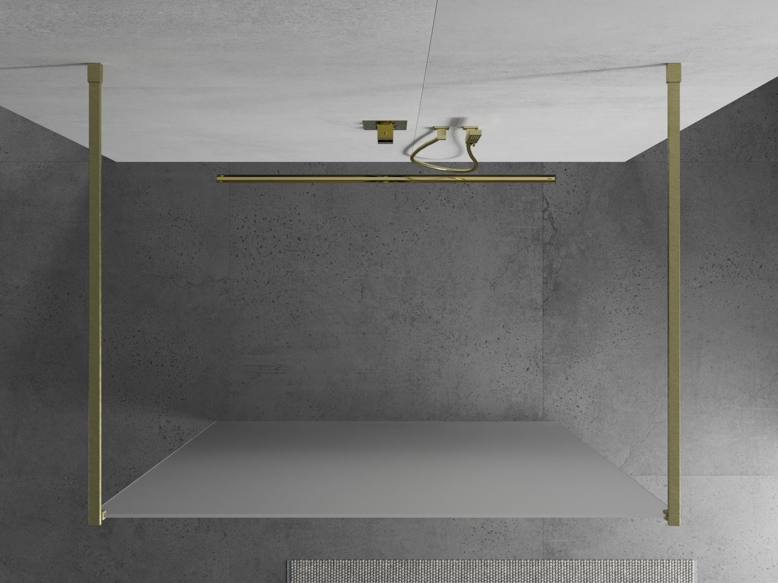 Mexen Kioto szabadon álló zuhanyfal 130 x 200 cm, zúzmarás 8 mm, arany kefés - 800-130-002-55-30