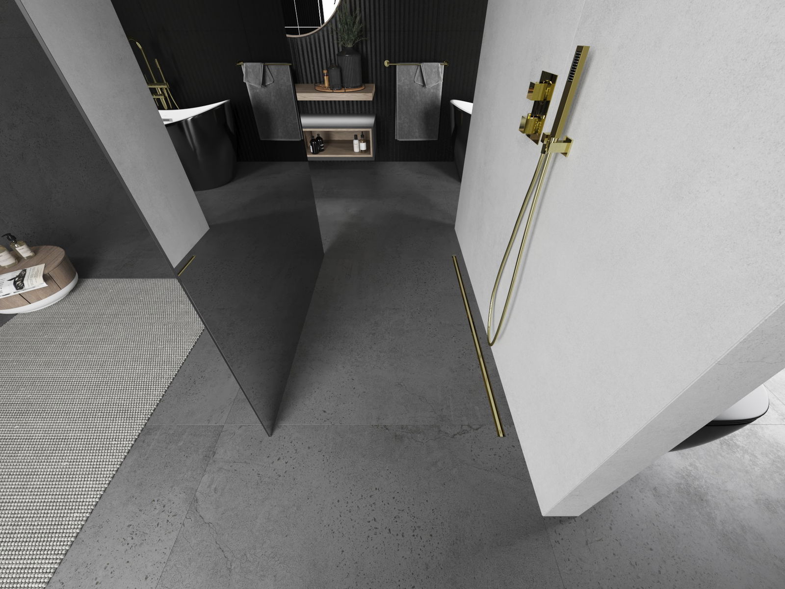 Mexen Kioto szabadon álló zuhanyfal 100 x 200 cm, tükör 8 mm, arany szálcsiszolt - 800-100-002-55-50