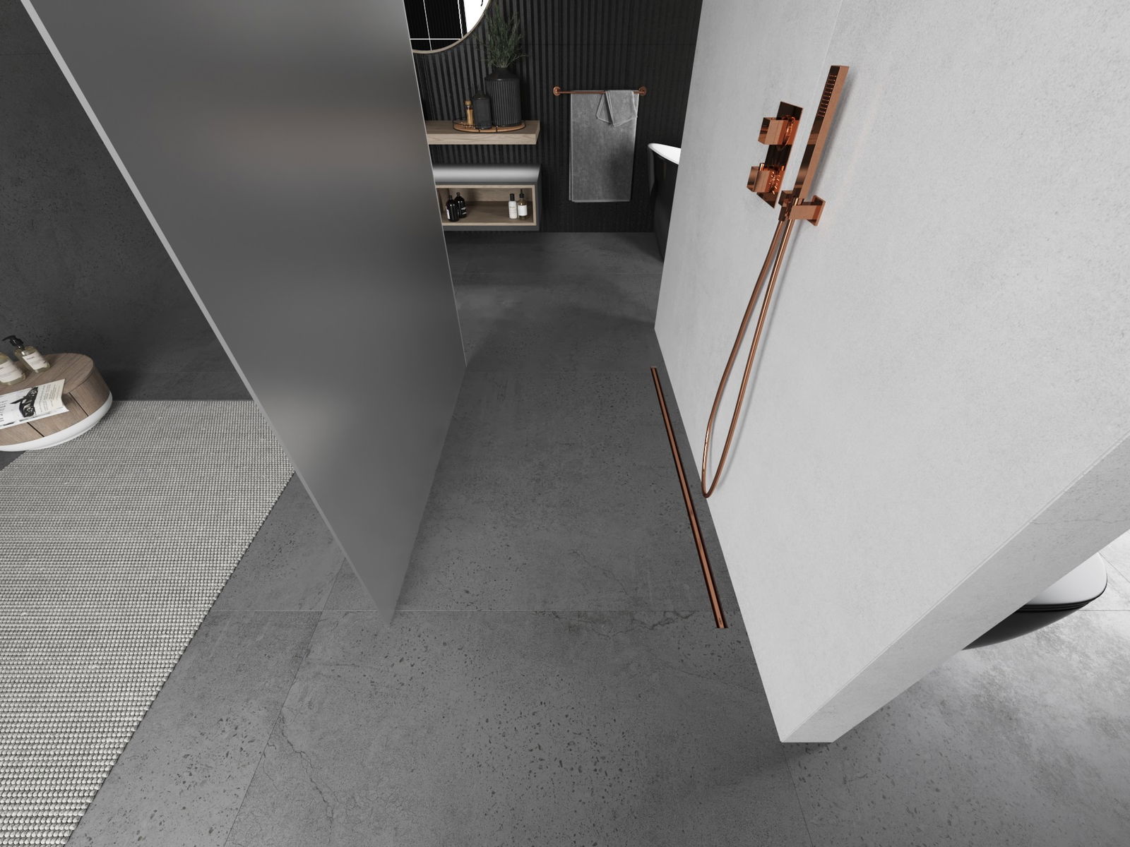 Mexen Kioto szabadon álló zuhanyfal 140 x 200 cm, matt 8 mm, kefélt réz - 800-140-002-65-30