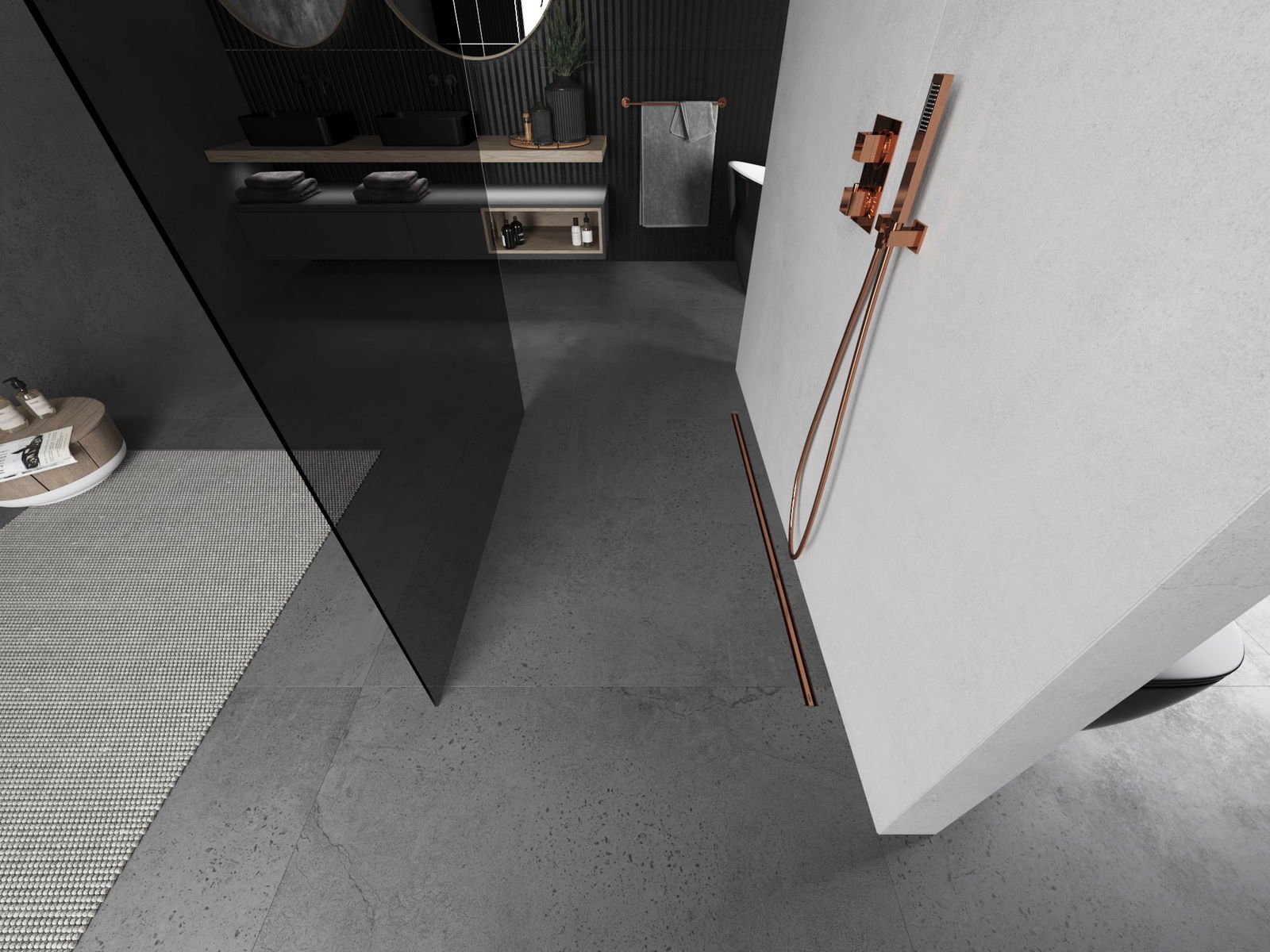 Mexen Kioto szabadon álló zuhanyfal 100 x 200 cm, grafit 8 mm, kefélt réz - 800-100-002-65-40