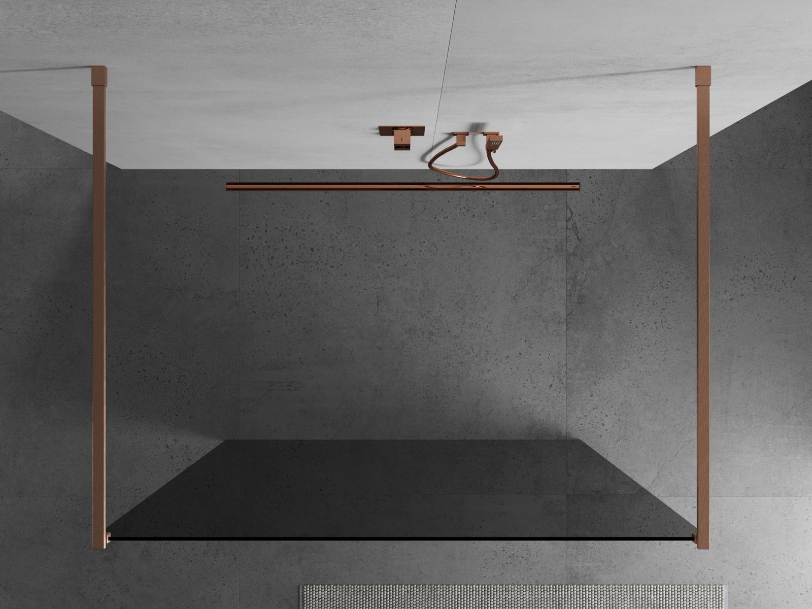 Mexen Kioto szabadon álló zuhanyfal 130 x 200 cm, grafit 8 mm, csiszolt réz - 800-130-002-65-40