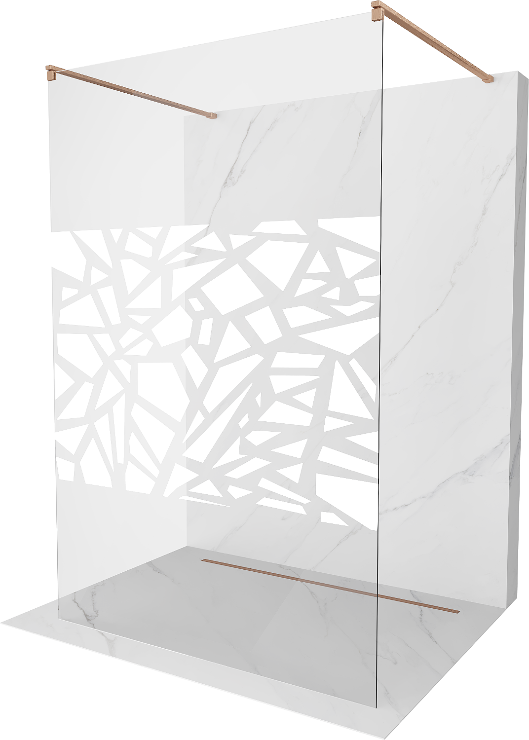 Mexen Kioto szabadon álló zuhanyfal 110 x 200 cm, fehér mintázat 8 mm, csiszolt réz - 800-110-002-65-85