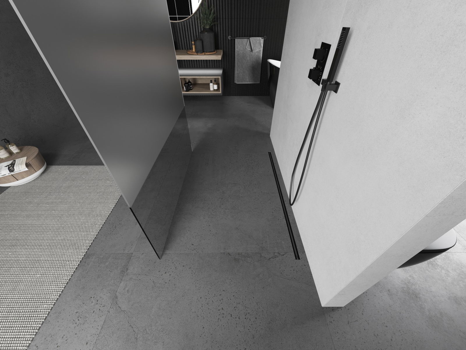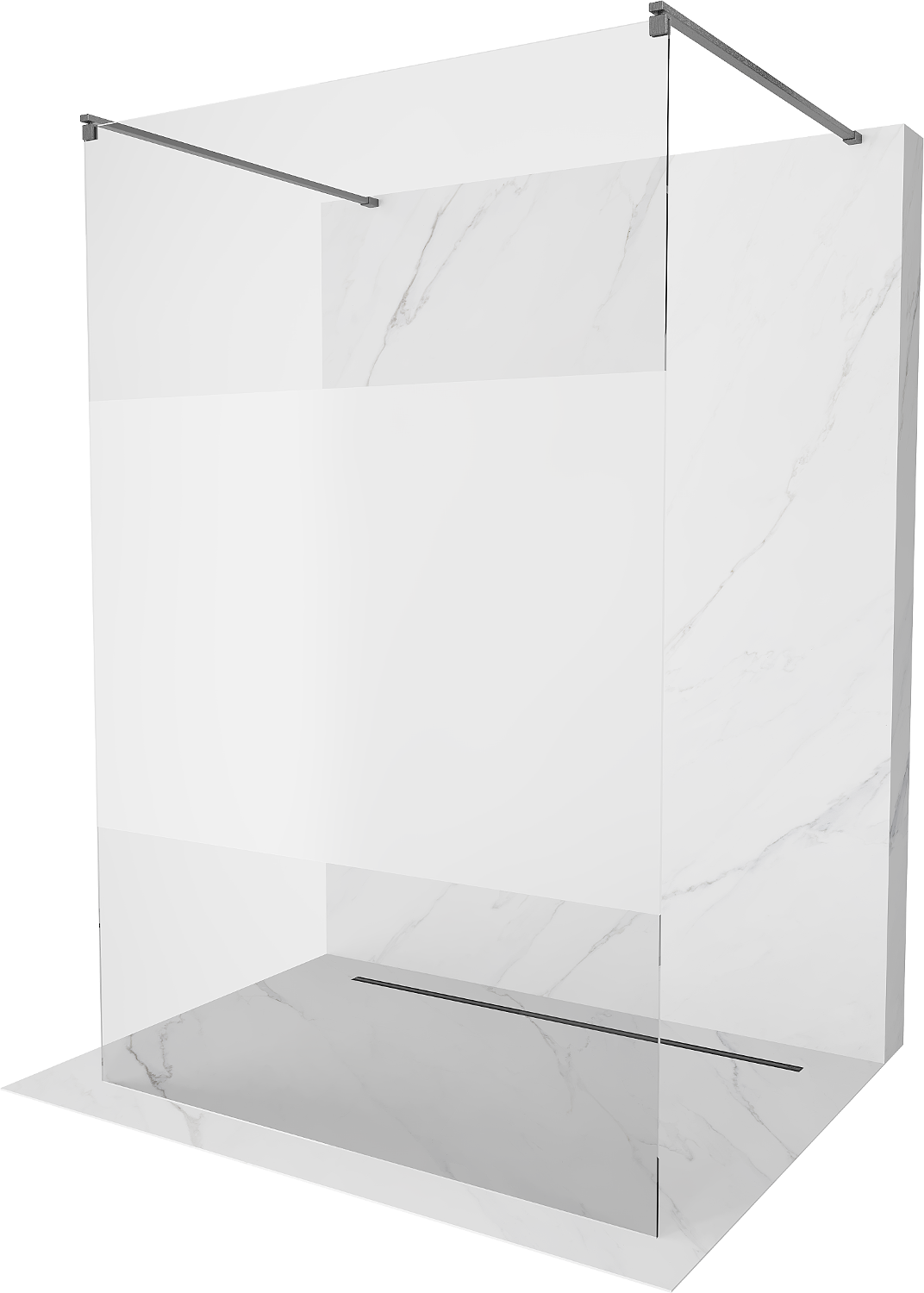 Mexen Kioto szabadon álló zuhanyfal 120 x 200 cm, átlátszó/fagyott 8 mm, szálcsiszolt gun szürke - 800-120-002-66-35