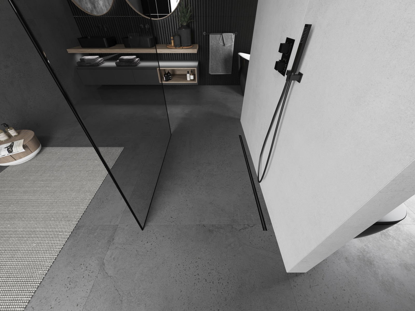 Mexen Kioto szabadon álló zuhanyfal 130 x 200 cm, fekete keret 8 mm, gun gray kefezett - 800-130-002-66-70