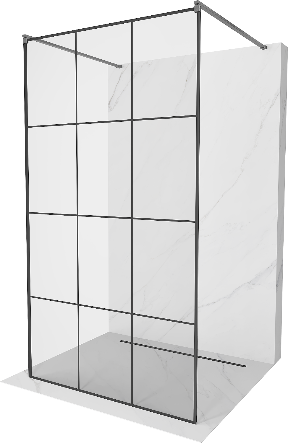 Mexen Kioto szabadon álló zuhanyfal 110 x 200 cm, fekete rács 8 mm, gun szürke csiszolt - 800-110-002-66-77