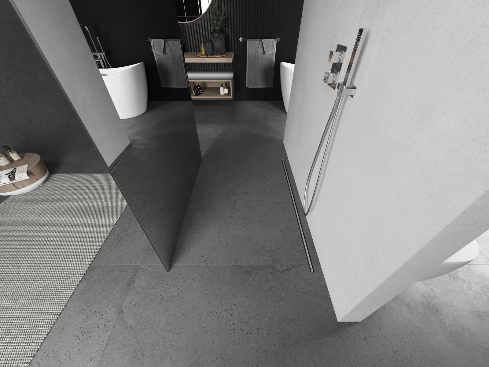 A terméket igény szerint felszerelheti akár a zuhanytálcára, akár közvetlenül a padlóra. Az univerzális szerelési mód lehetővé teszi a termék alkalmazkodását különböző típusú fürdőszobákhoz és térbeli konfigurációkhoz.