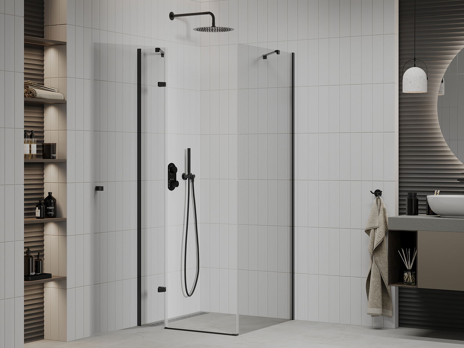 Mexen Roma nyíló zuhanykabin 70 x 70 cm, átlátszó, fekete - 854-070-070-70-00