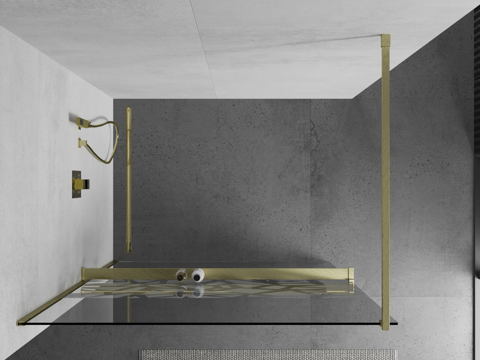 Mexen Kioto+ zuhanyfal polccal Walk-in 90 x 200 cm, fehér minta, arany kefélt - 800-090-121-55-85