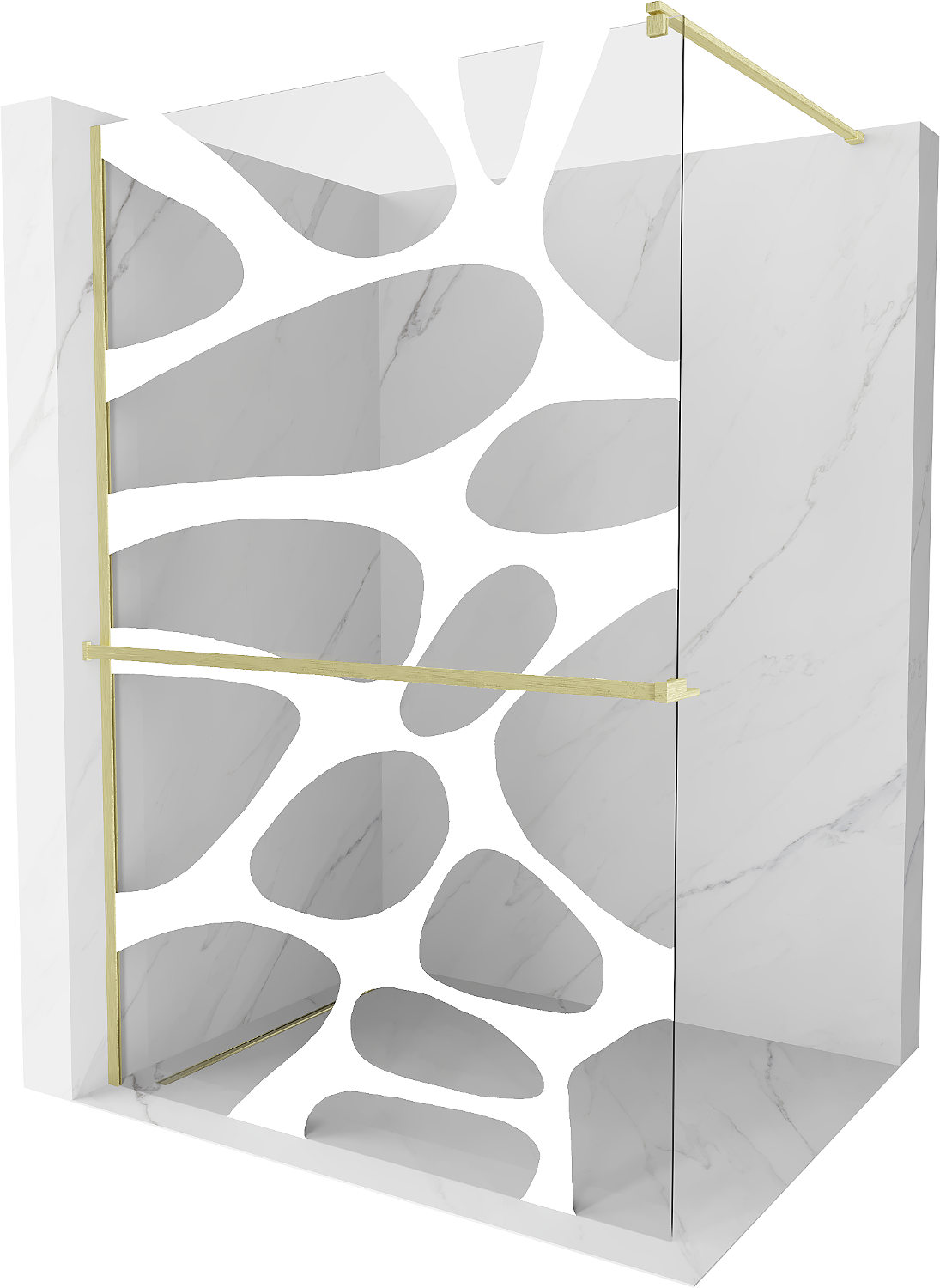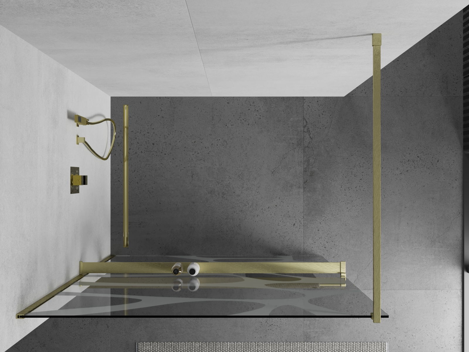 Mexen Kioto+ zuhanyfal polccal, Walk-in 140 x 200 cm, fehér hullám, arany szálcsiszolt - 800-140-121-55-97