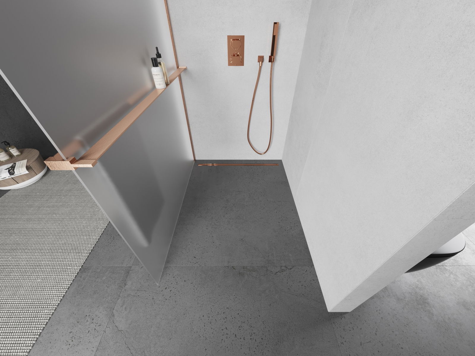 Mexen Kioto+ zuhanyfal polccal, Walk-in 100 x 200 cm, deres, kefe réz - 800-100-121-65-30