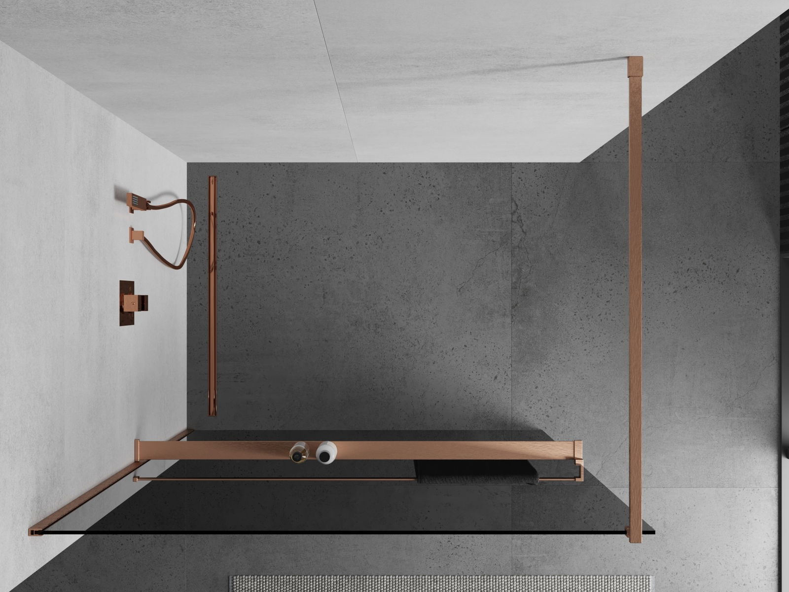 Mexen Kioto+ zuhanyfal polccal Walk-in 110 x 200 cm, grafit, kefélt réz - 800-110-121-65-40