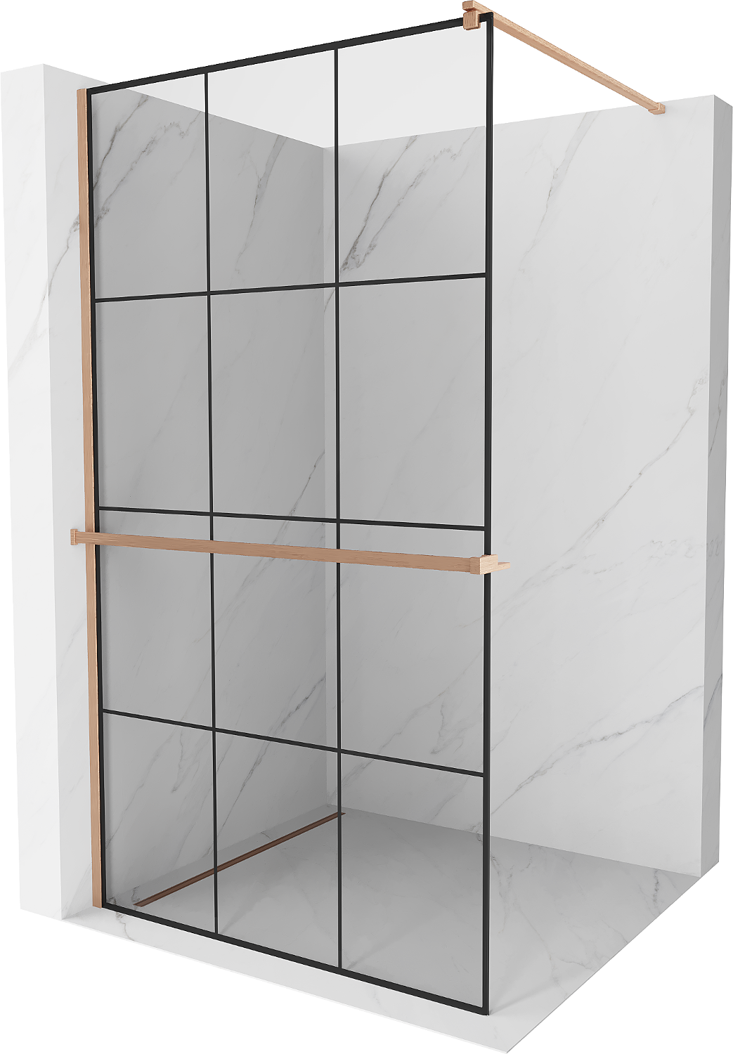 Mexen Kioto+ zuhanyfal Walk-in polccal 120 x 200 cm, fekete rács, sörtételt réz - 800-120-121-65-77
