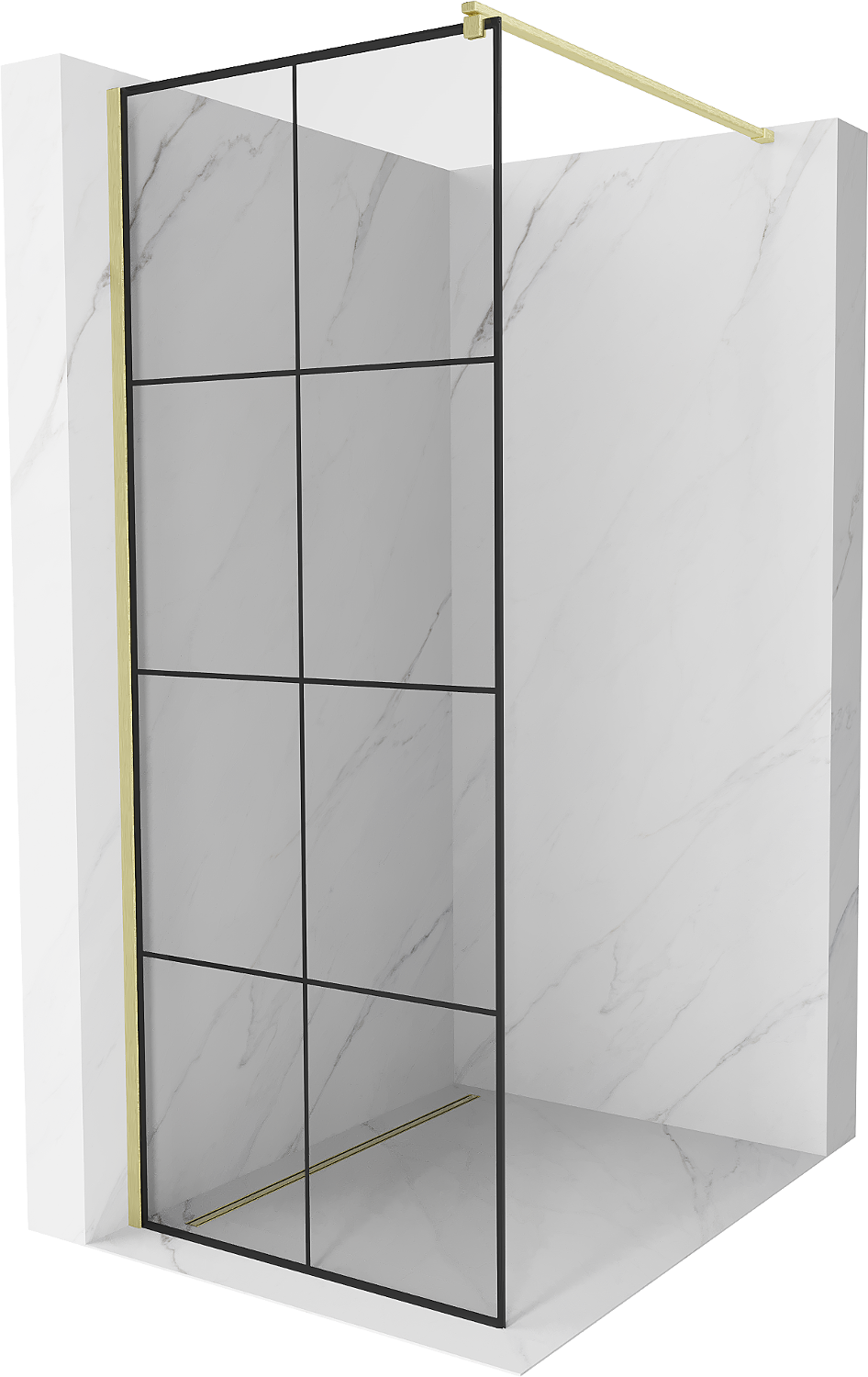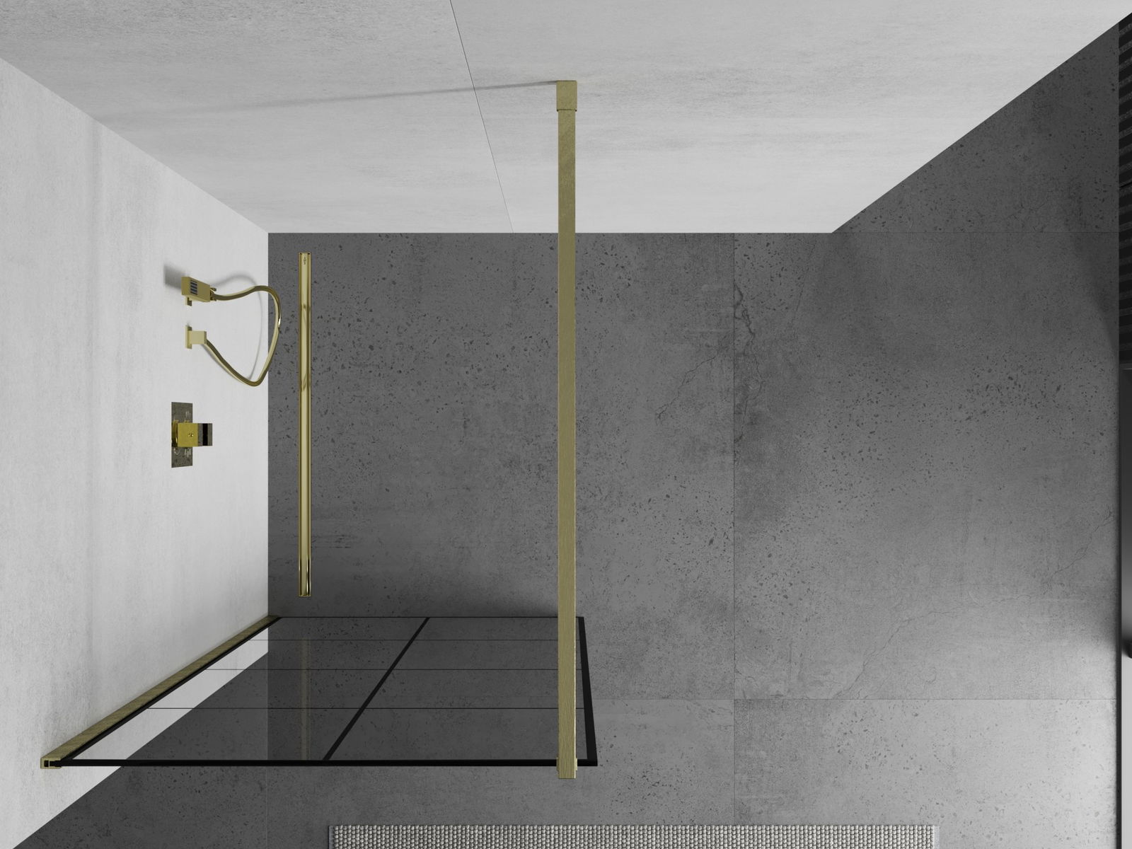 Mexen Kioto Walk-in zuhanyfal 80 x 200 cm, fekete rács 8 mm, arany kefehúzott - 800-080-101-55-77