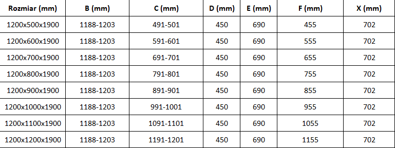 Méret: 120x100 cm (ajtó 120 cm, fal 100 cm)