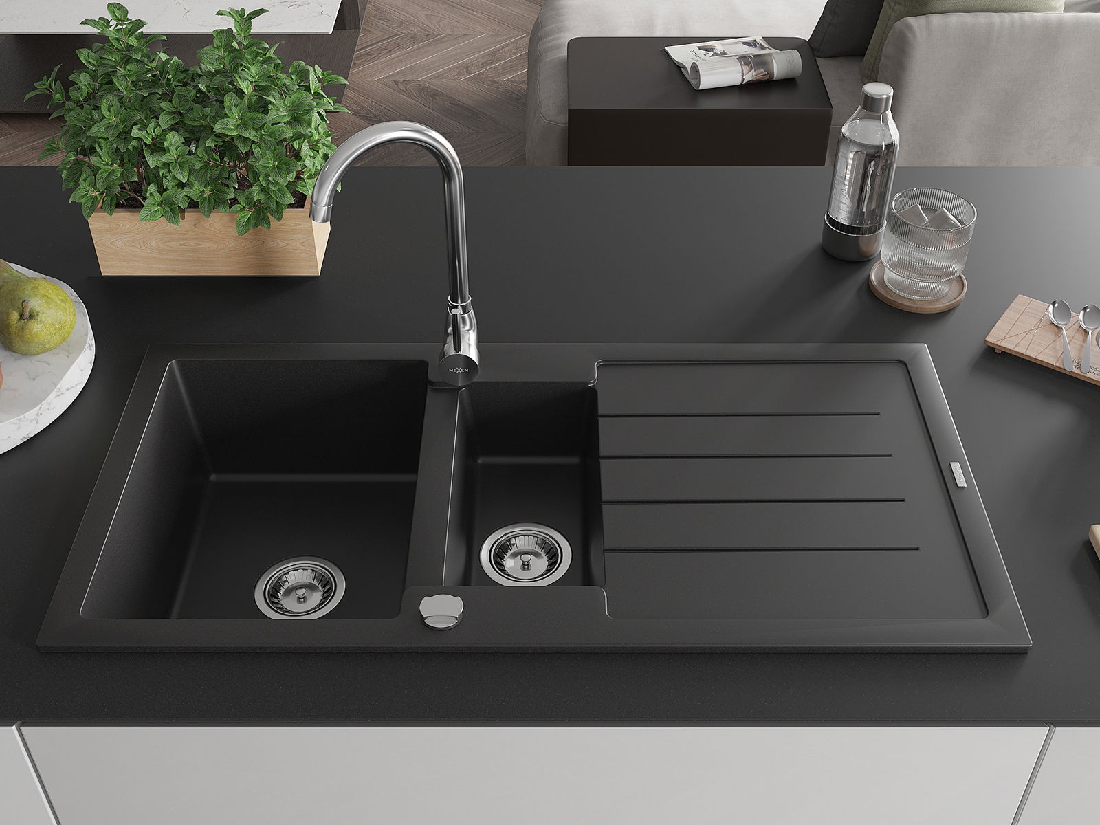 A mosogató kiváló minőségű gránitból készül. Ez egy elegáns és mindenekelőtt minden konyhához praktikus kiegészítés, stílusától függetlenül. A kiváló minőségű és a gránit tartósság biztosítja a sok éves használatát.