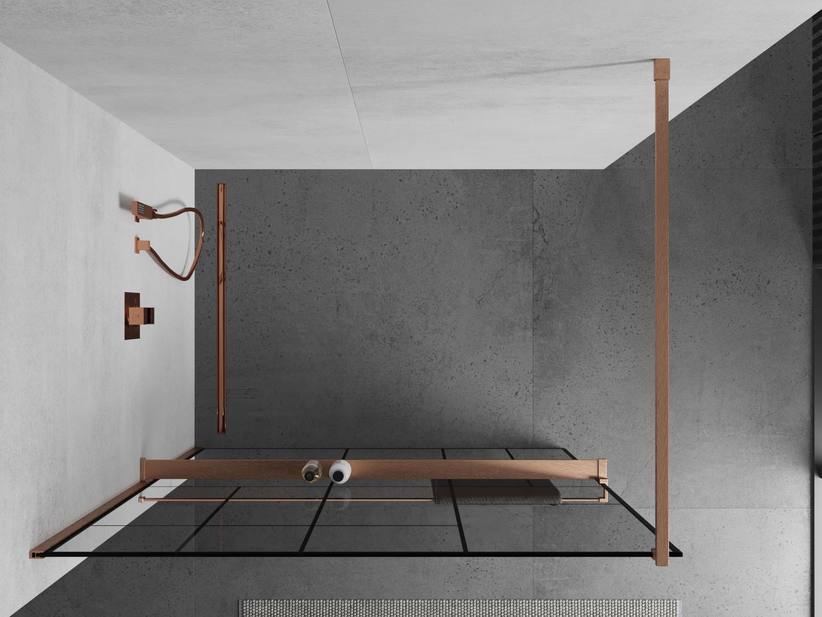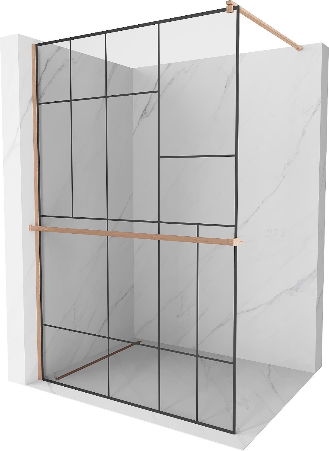 Mexen Kioto+ zuhanyfal polccal Walk-in 120 x 200 cm, fekete minta, csiszolt réz - 800-120-121-65-78
