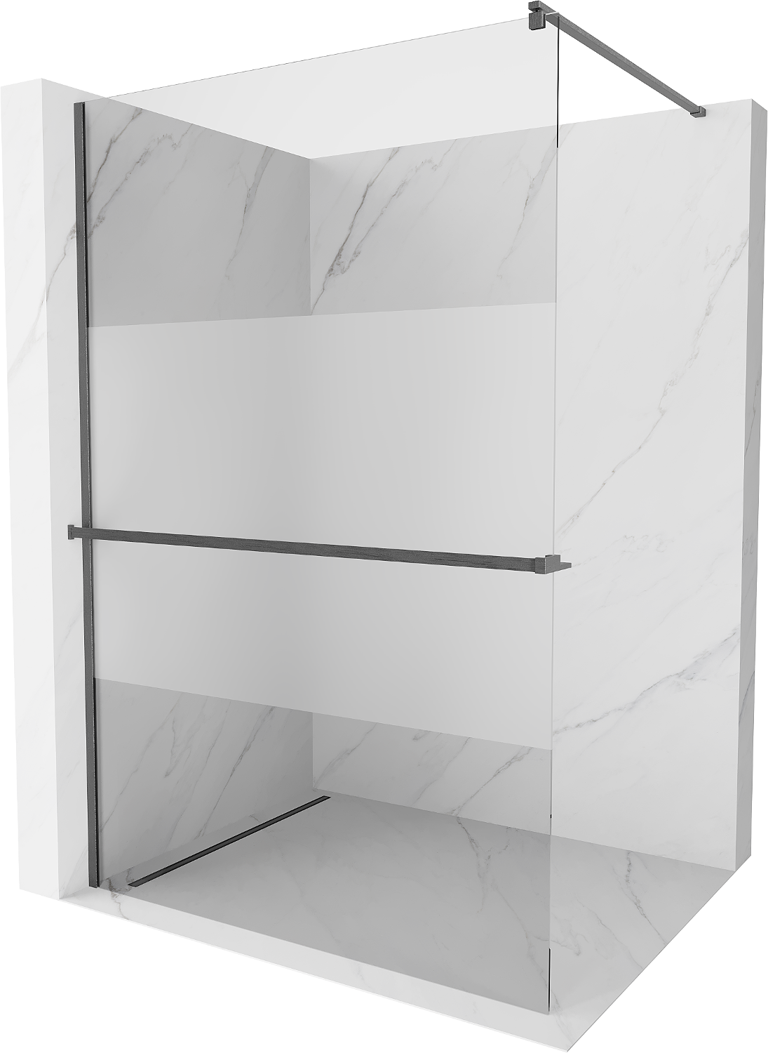 Mexen Kioto+ zuhanyfal polccal Walk-in 120 x 200 cm, átlátszó/jégvirág, gun szürke kefe - 800-120-121-66-35