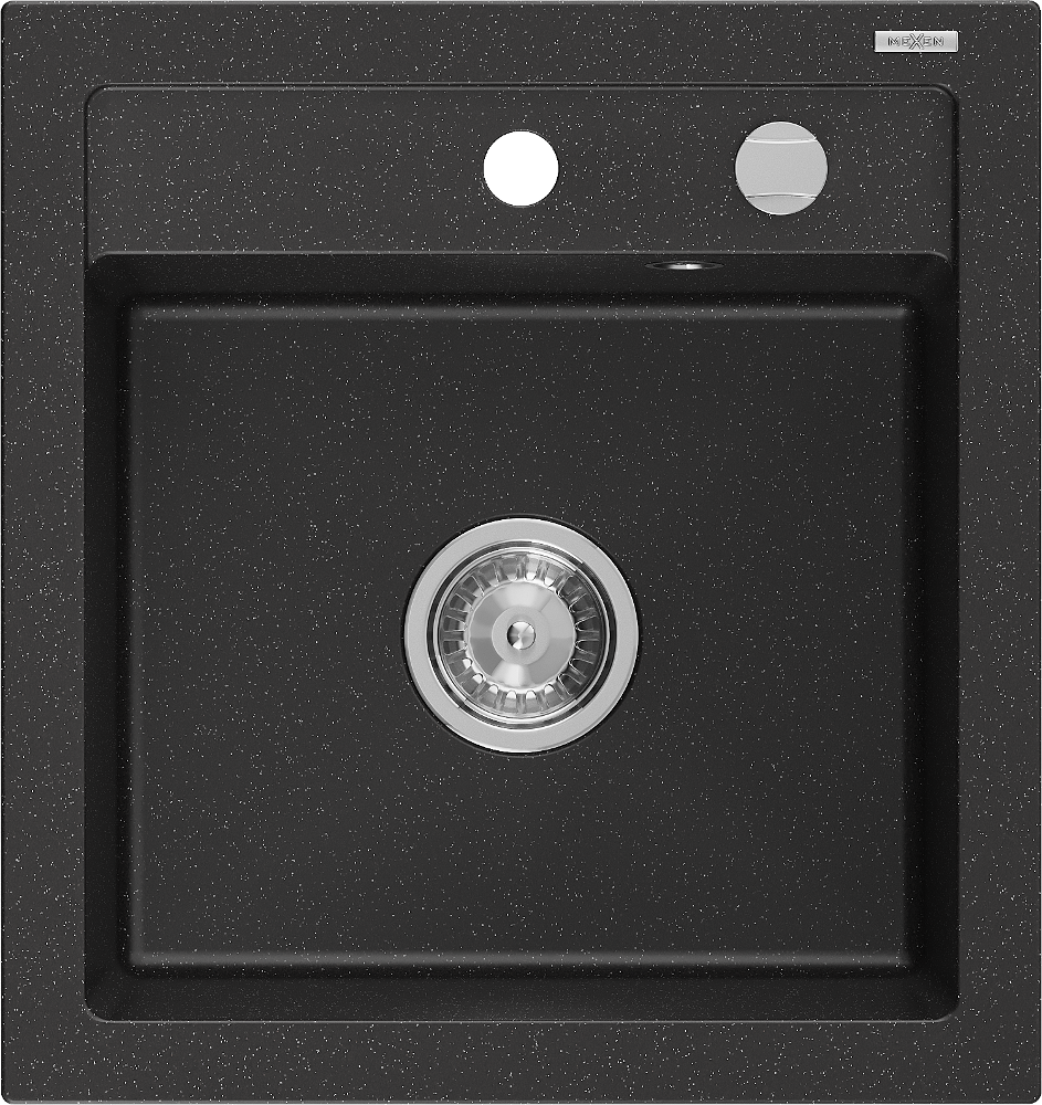 Mexen Vito 1 rekeszes gránit mosogató 520 x 490 mm, fekete/ezüst metál, krómozott szifon - 6503521000-73