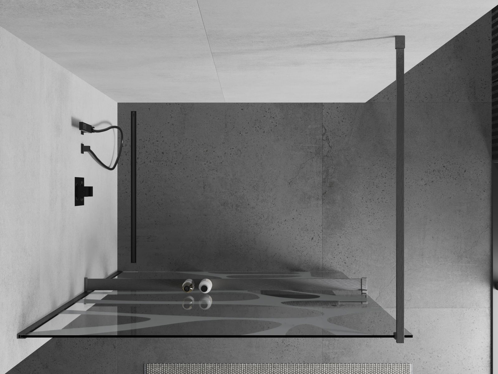 Mexen Kioto+ zuhanyfal polccal Walk-in 80 x 200 cm, fehér hullám, gun gray kefélt - 800-080-121-66-97