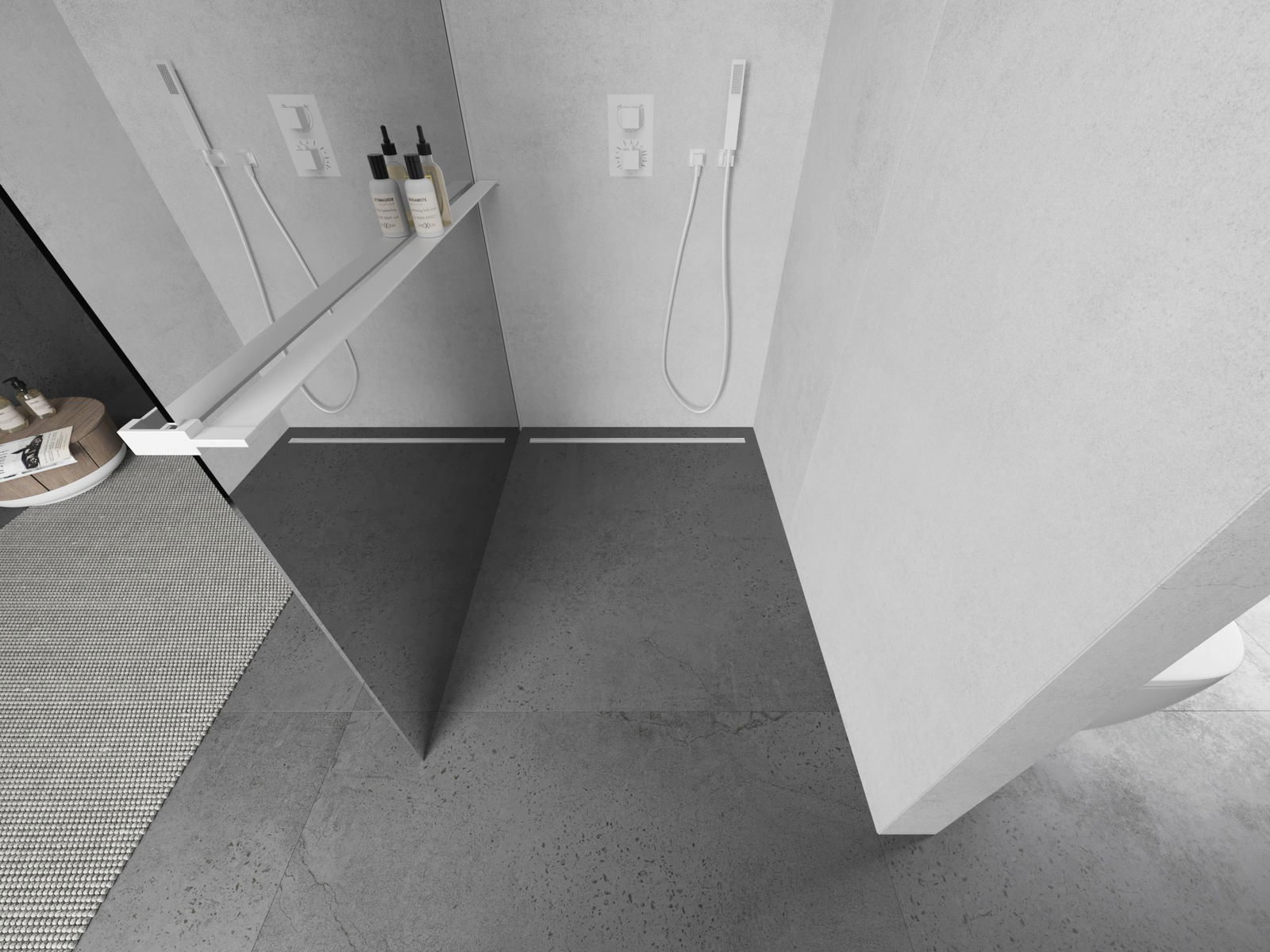 A terméket igény szerint felszerelheti akár a zuhanytálcára, akár közvetlenül a padlóra. Az univerzális szerelési mód lehetővé teszi a termék alkalmazkodását különböző típusú fürdőszobákhoz és térbeli konfigurációkhoz.