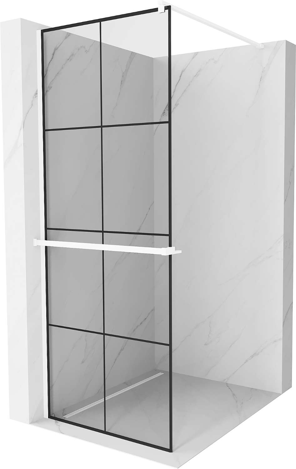 Mexen Kioto+ Zuhanyfal polccal Walk-in 80 x 200 cm, fekete rács, fehér - 800-080-121-20-77