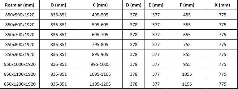 Méret: 85x90 cm (ajtó 85 cm, fal 90 cm)