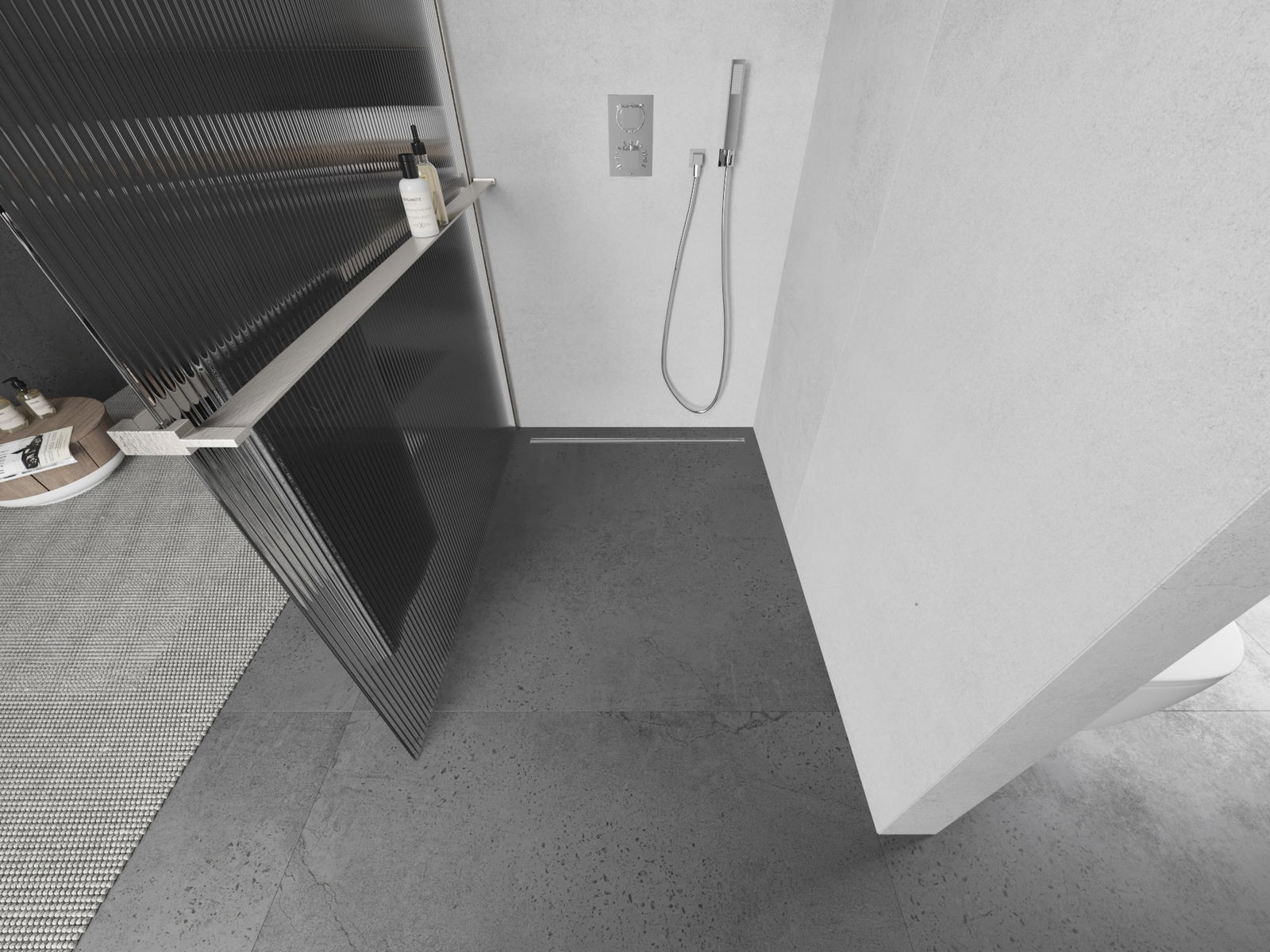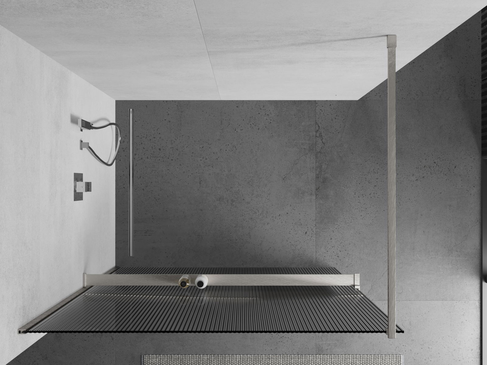 Mexen Kioto+ Zuhanyfal polccal Walk-in 120 x 200 cm, csíkos, kefefinomságú nikkel - 800-120-121-97-09