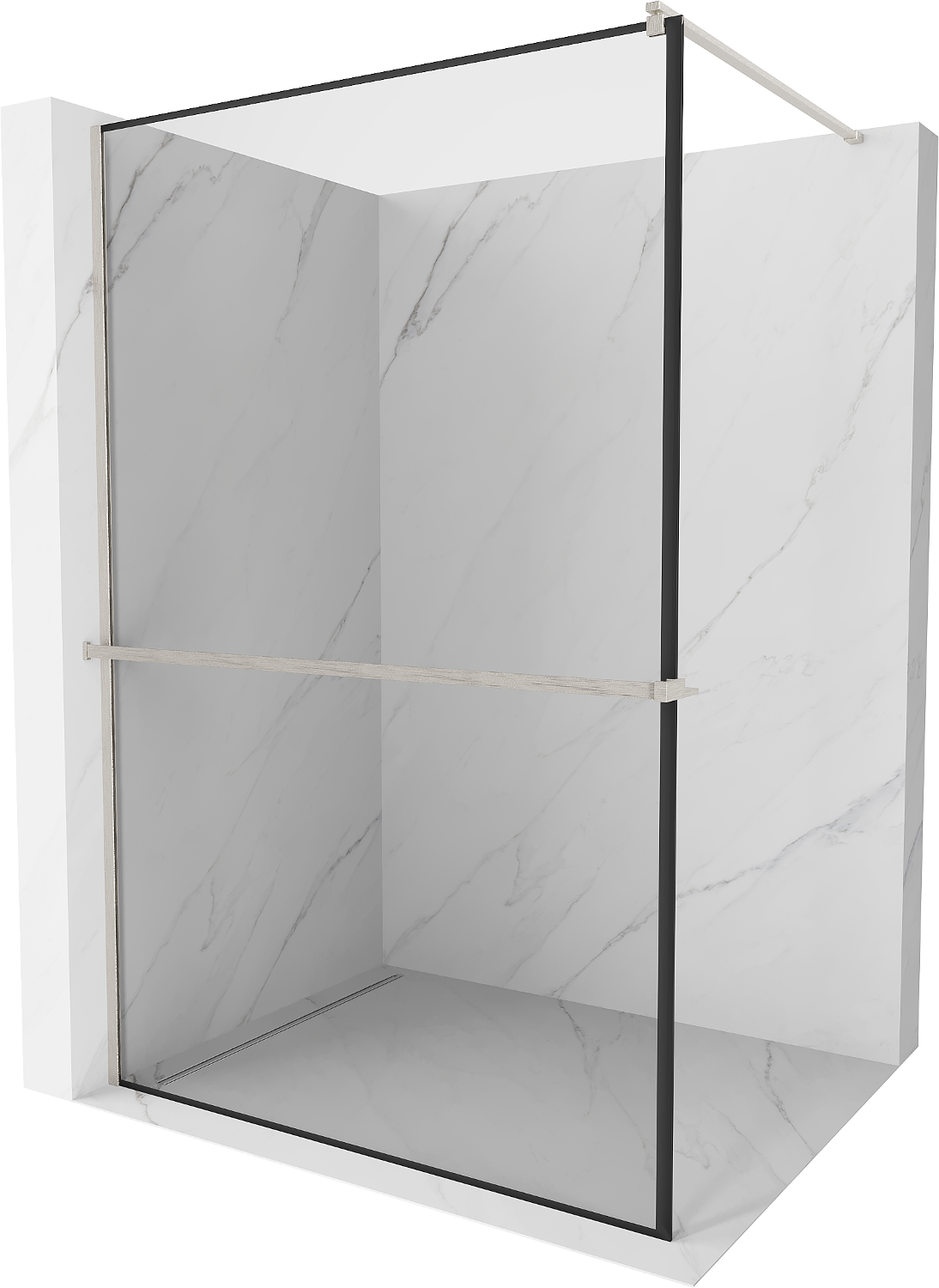 Mexen Kioto+ Walk-in zuhanyfal polccal 130 x 200 cm, fekete keret, szálcsiszolt nikkel - 800-130-121-97-70