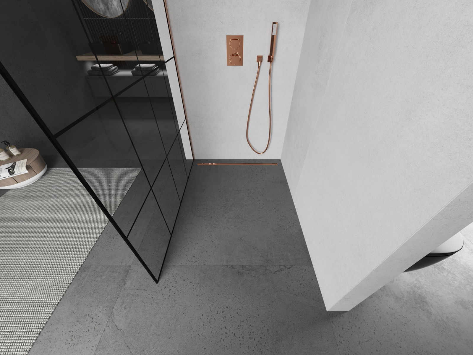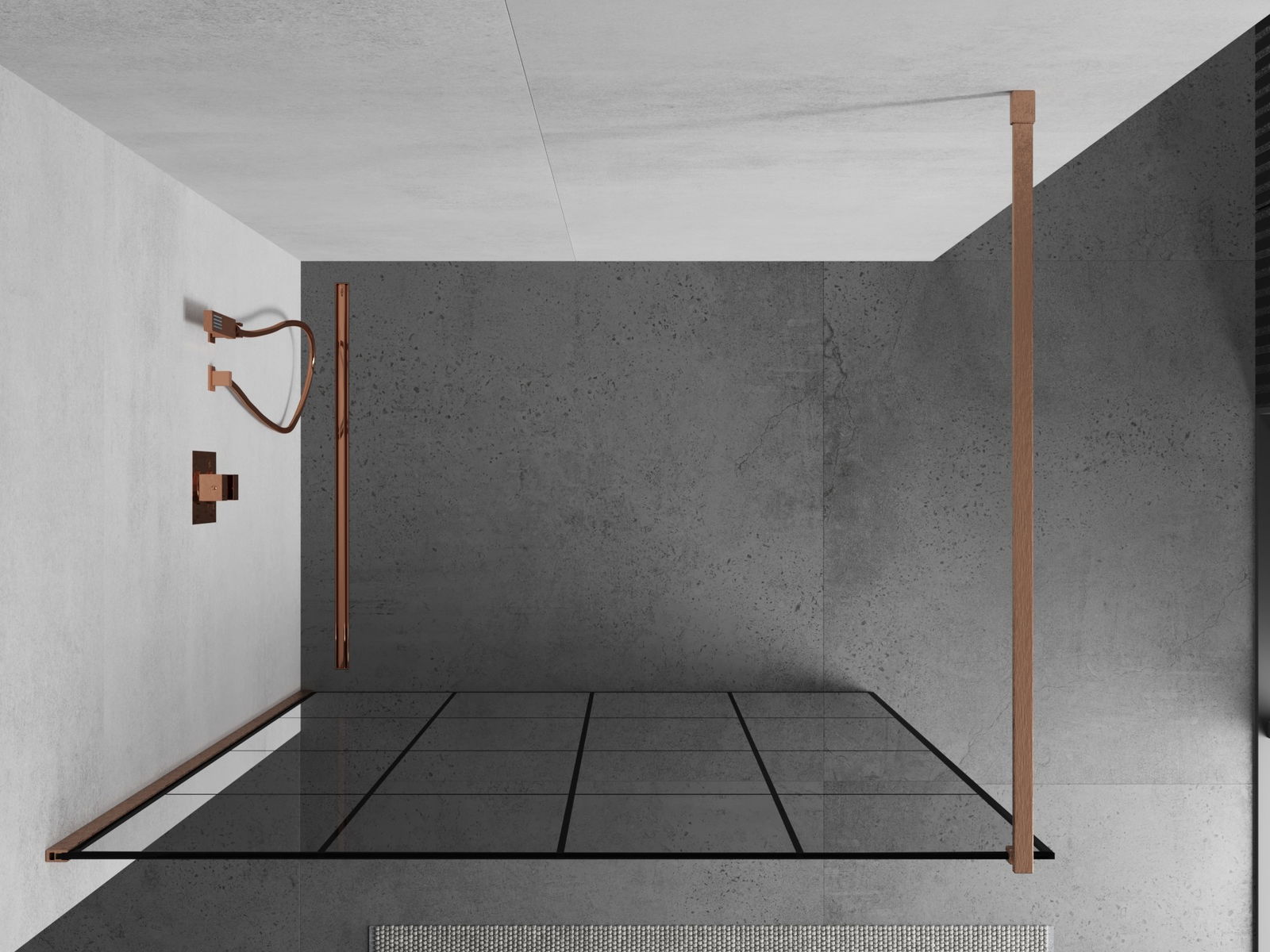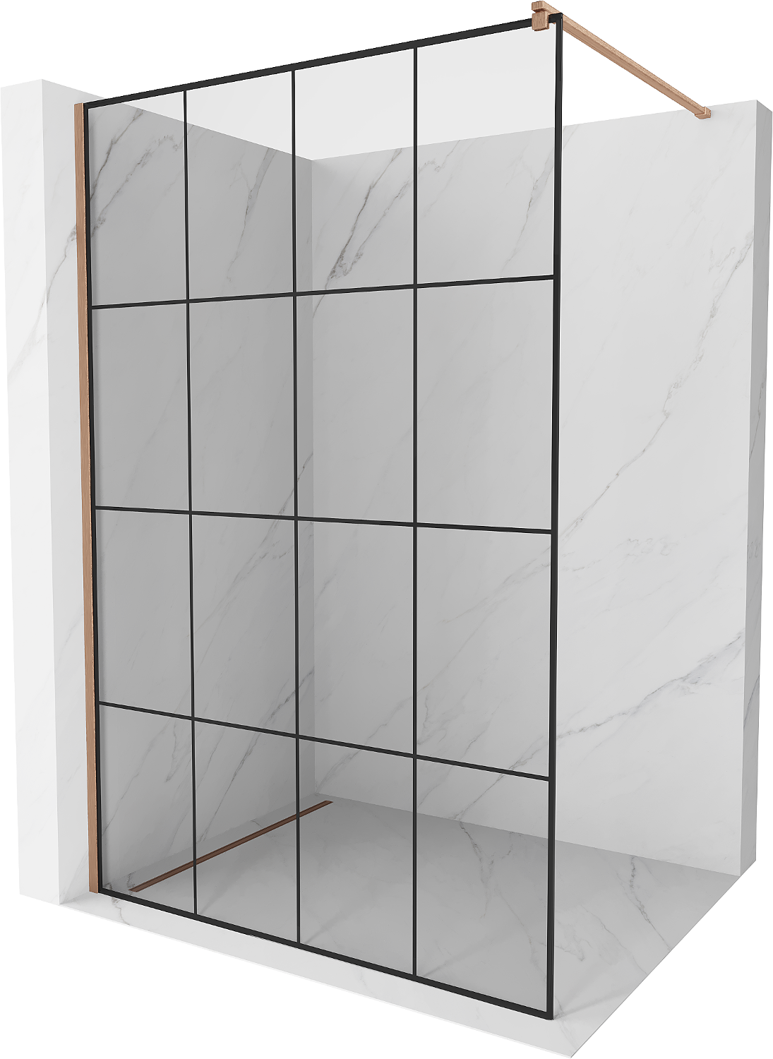 Mexen Kioto zuhanyfal Walk-in 160 x 200 cm, fekete rács 8 mm, csiszolt réz - 800-160-101-65-77