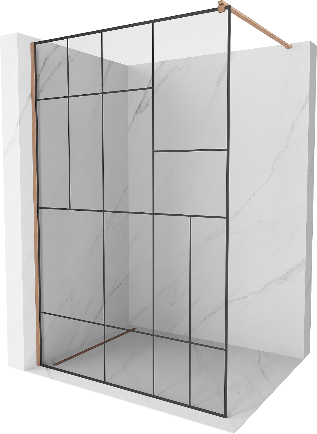 Mexen Kioto zuhanyfal Walk-in 130 x 200 cm, fekete minta 8 mm, kefe hatású réz - 800-130-101-65-78