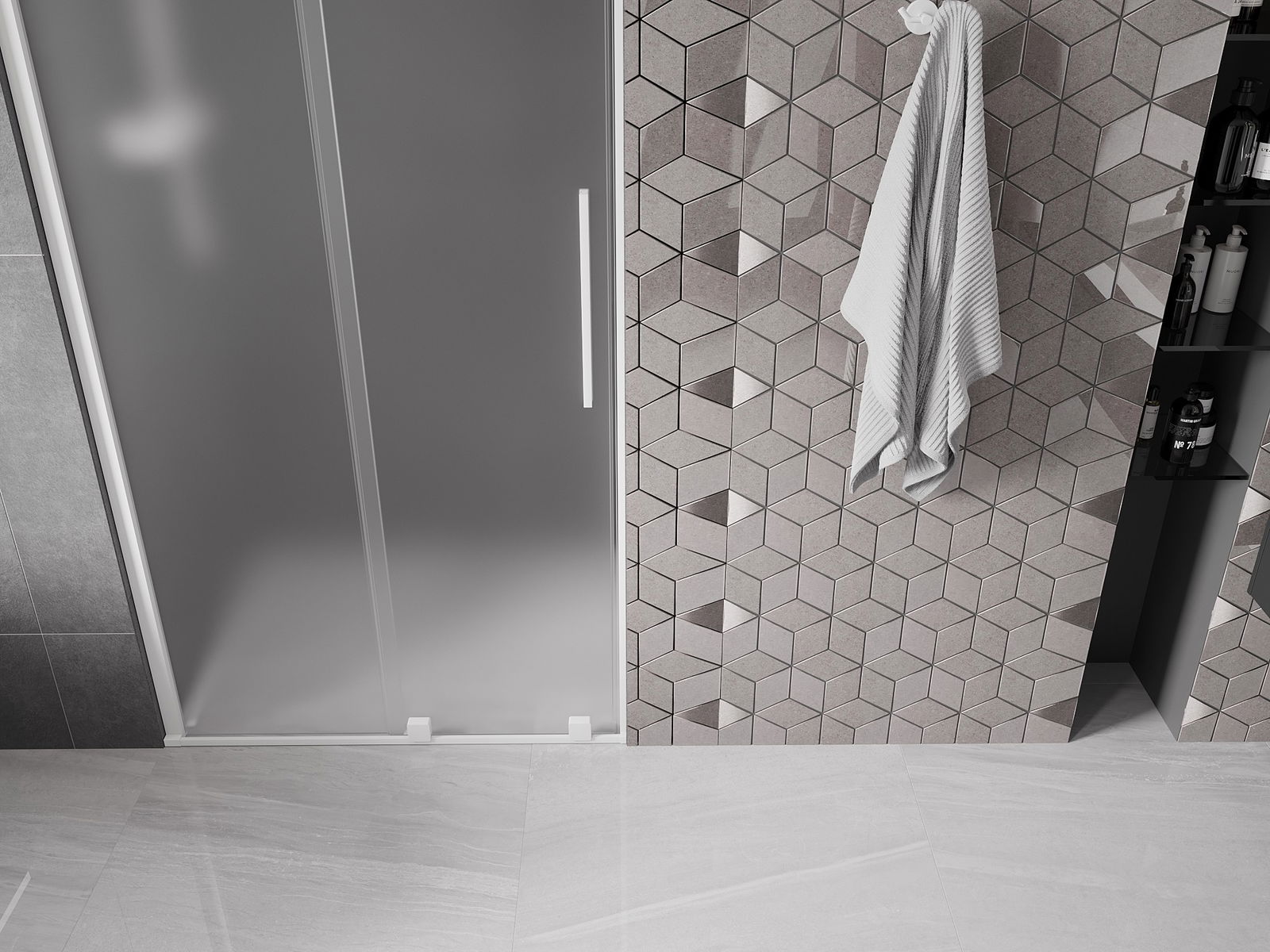 A praktikus és kényelmes fogantyú rozsdamentes acélból készült. A divatos forma a profilok színéhez igazított kivitelezéssel modern és stílusos megjelenést kölcsönöz az egésznek, kiemelve minden fürdőszoba esztétikáját.