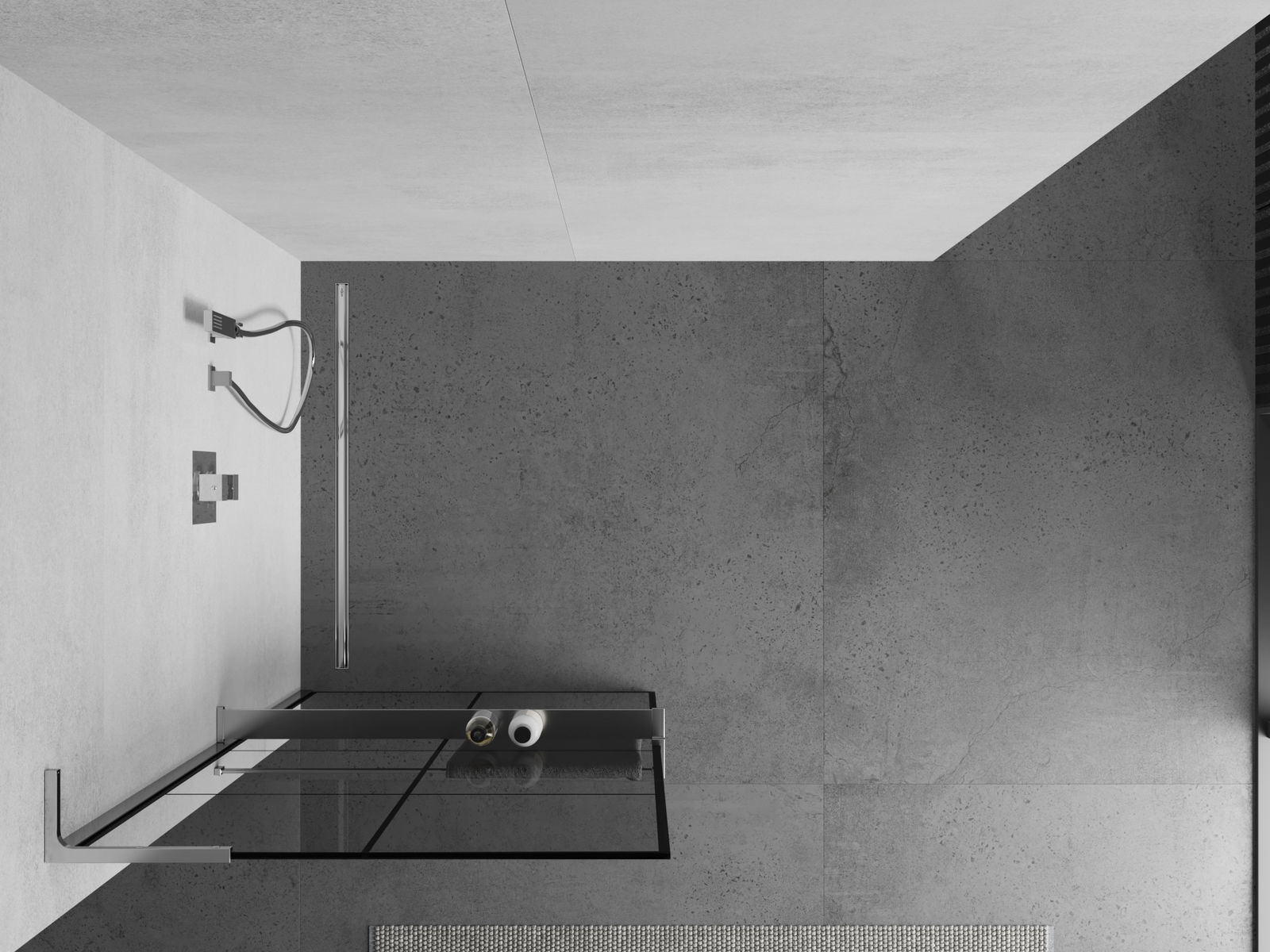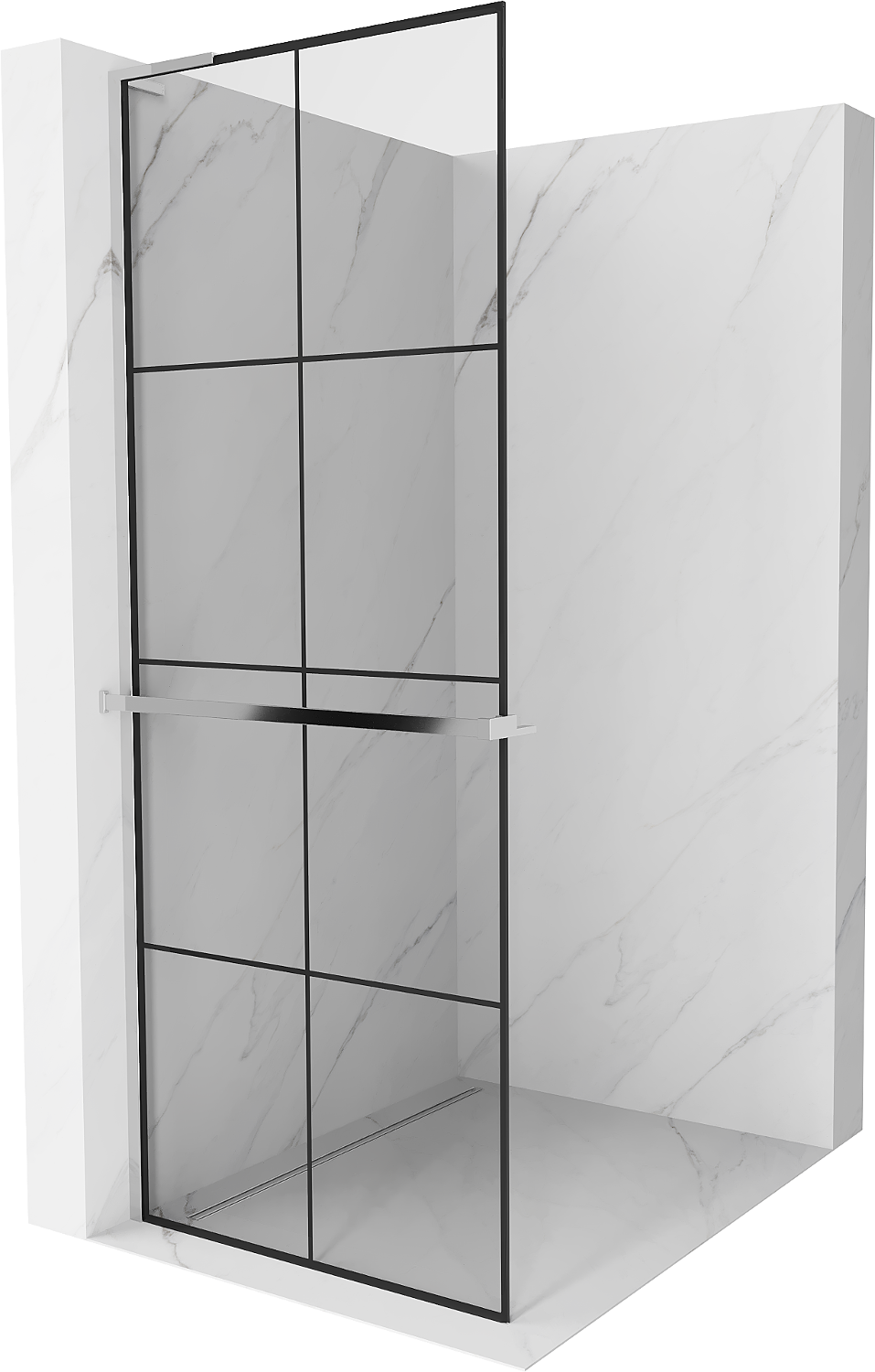 Mexen Kioto+ L zuhanyfal polccal Walk-in 80 x 200 cm, fekete rácsos, króm - 800-080-123-01-77