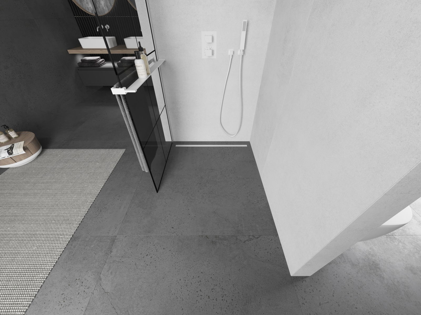 A terméket igény szerint felszerelheti akár a zuhanytálcára, akár közvetlenül a padlóra. Az univerzális szerelési mód lehetővé teszi a termék alkalmazkodását különböző típusú fürdőszobákhoz és térbeli konfigurációkhoz.