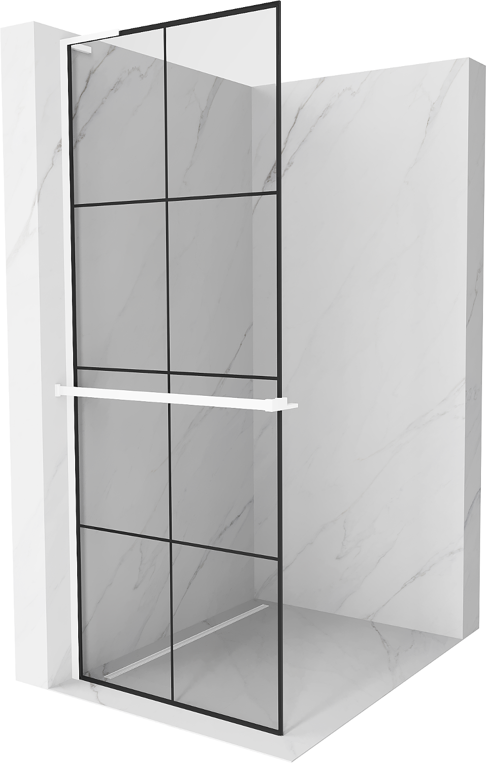 Mexen Kioto+ L zuhanyfal polccal Walk-in 90 x 200 cm, fekete rács, fehér - 800-090-123-20-77