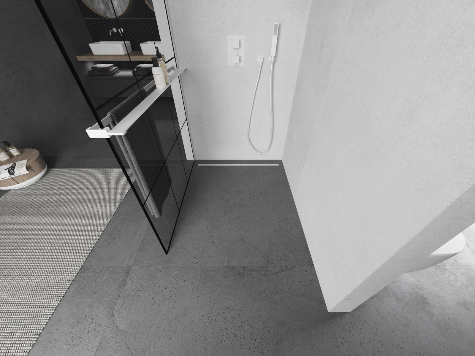 A terméket igény szerint felszerelheti akár a zuhanytálcára, akár közvetlenül a padlóra. Az univerzális szerelési mód lehetővé teszi a termék alkalmazkodását különböző típusú fürdőszobákhoz és térbeli konfigurációkhoz.
