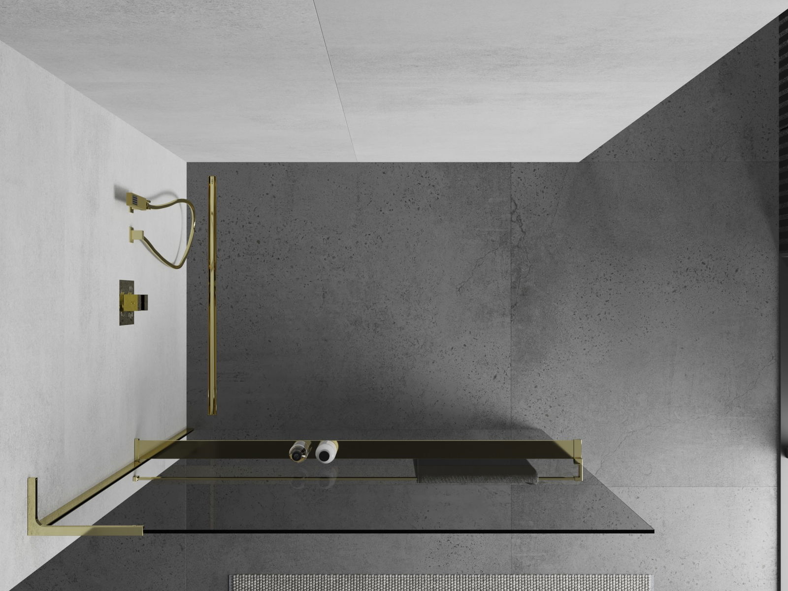Mexen Kioto+ L zuhanyfal polccal, Walk-in 80 x 200 cm, átlátszó, arany - 800-080-123-50-00