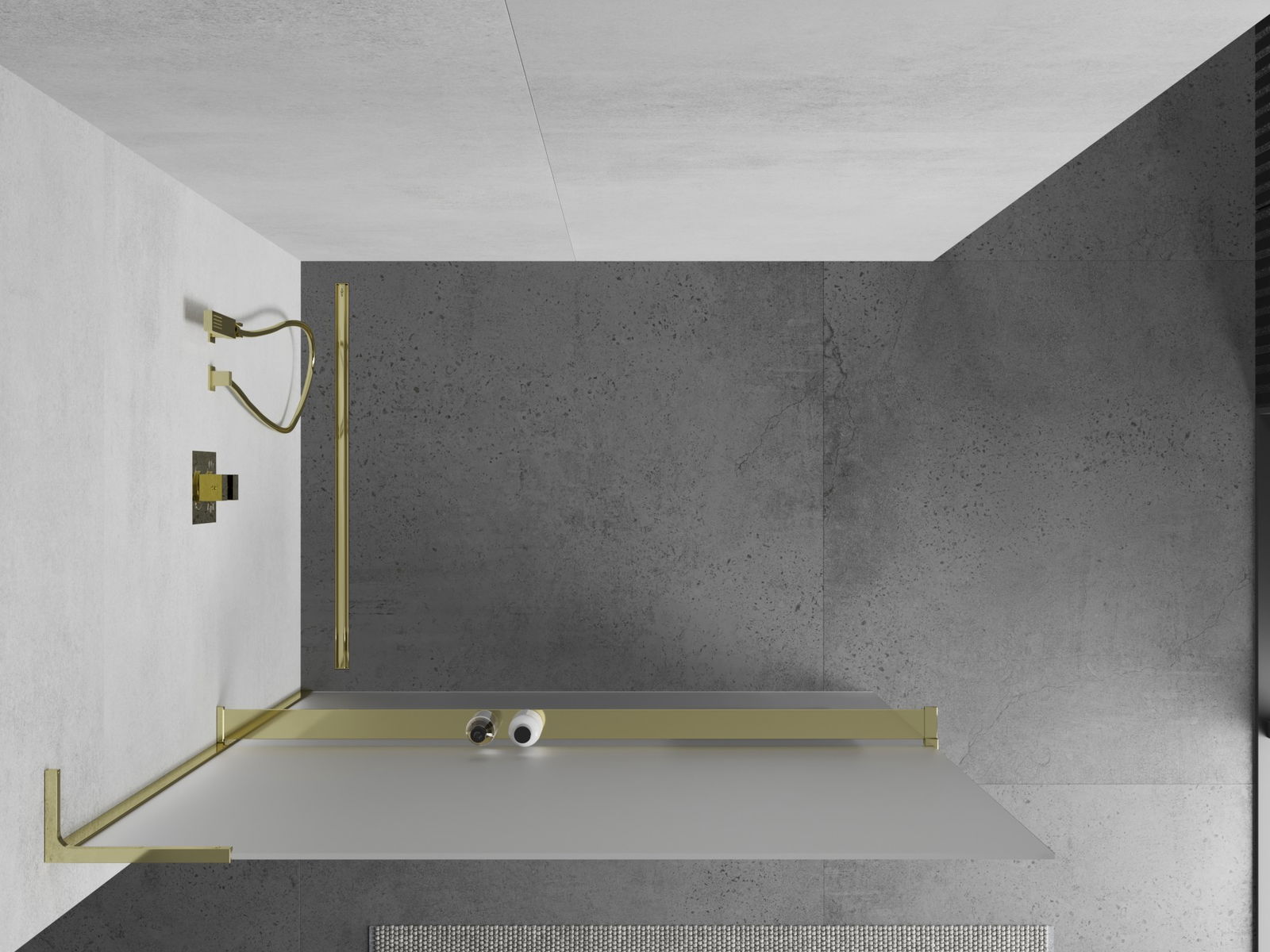 Mexen Kioto+ L zuhanyfal polccal Walk-in 90 x 200 cm, fagyott, arany - 800-090-123-50-30