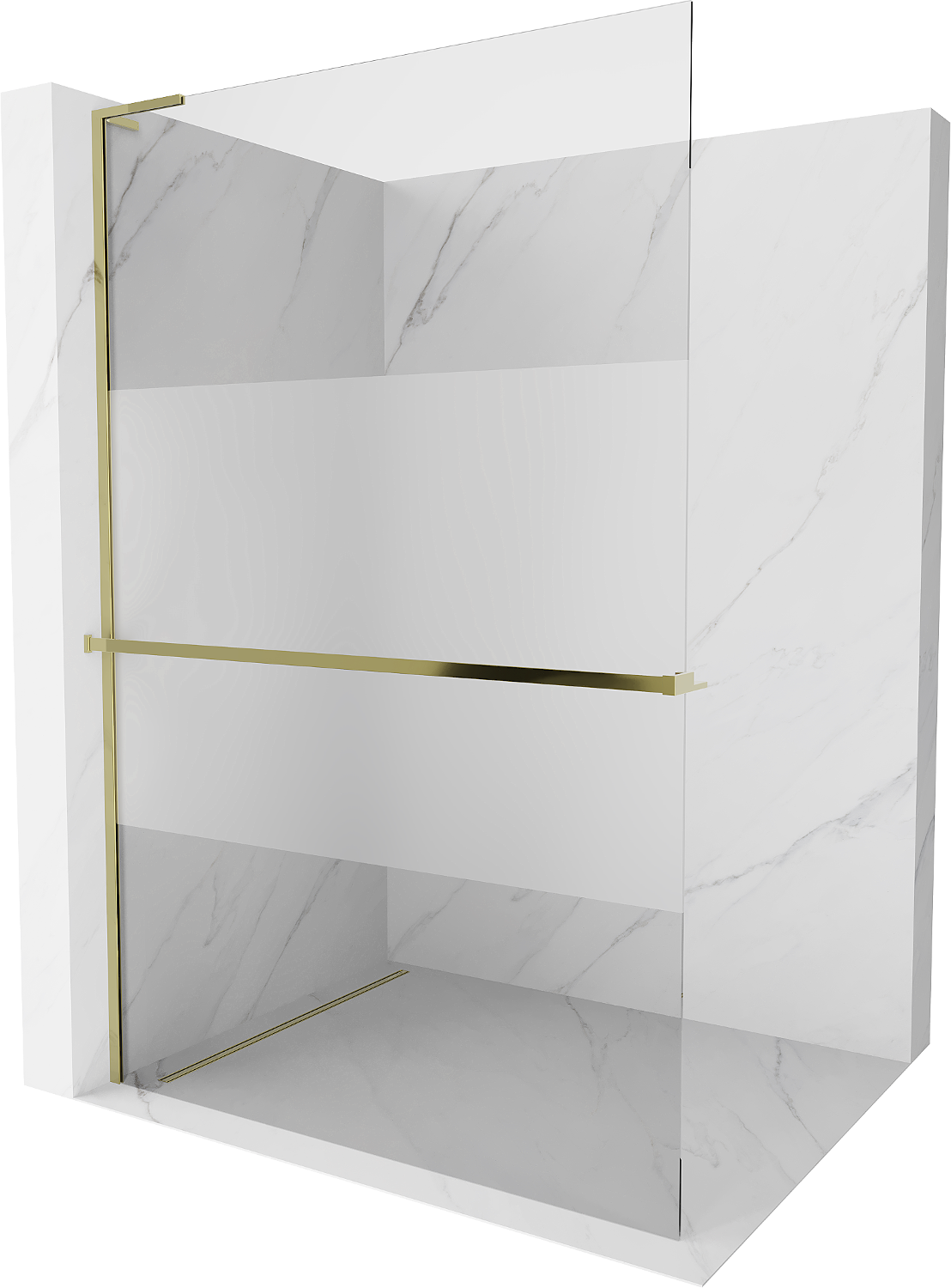 Mexen Kioto+ L zuhanyfal polccal, Walk-in 80 x 200 cm, átlátszó/fagyott, arany - 800-080-123-50-35