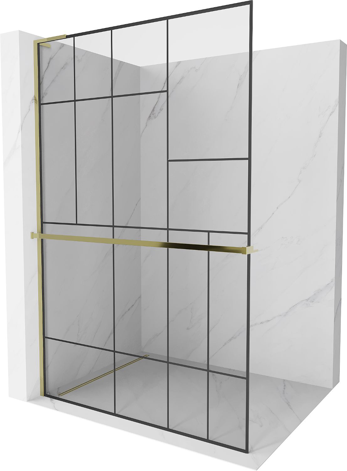Mexen Kioto+ L zuhanyfal polccal Walk-in 110 x 200 cm, fekete minta, arany - 800-110-123-50-78