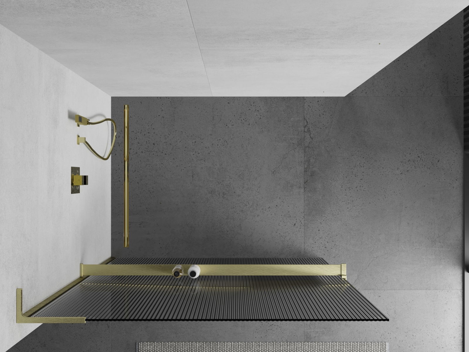Mexen Kioto+ L zuhanyfal polccal Walk-in 110 x 200 cm, csíkos, arany szálcsiszolt - 800-110-123-55-09