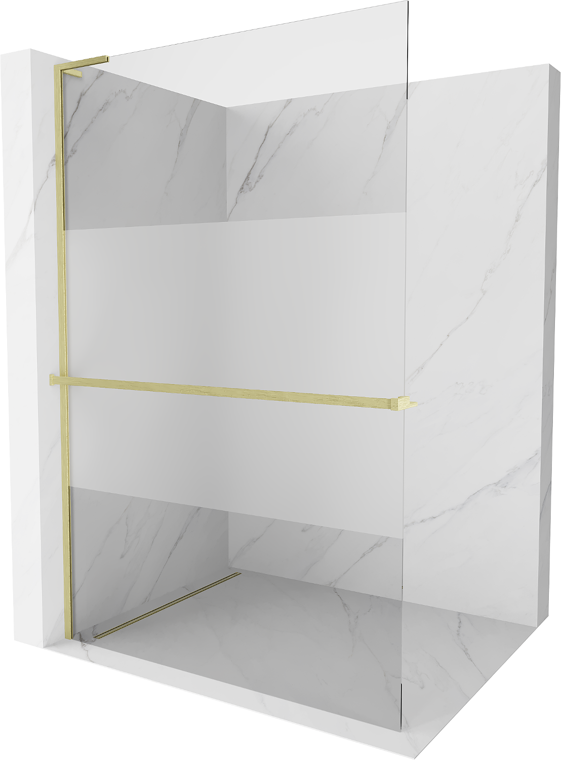 Mexen Kioto+ L Zuhanyfal polccal Walk-in 100 x 200 cm, átlátszó/fagyos, arany kefélt - 800-100-123-55-35