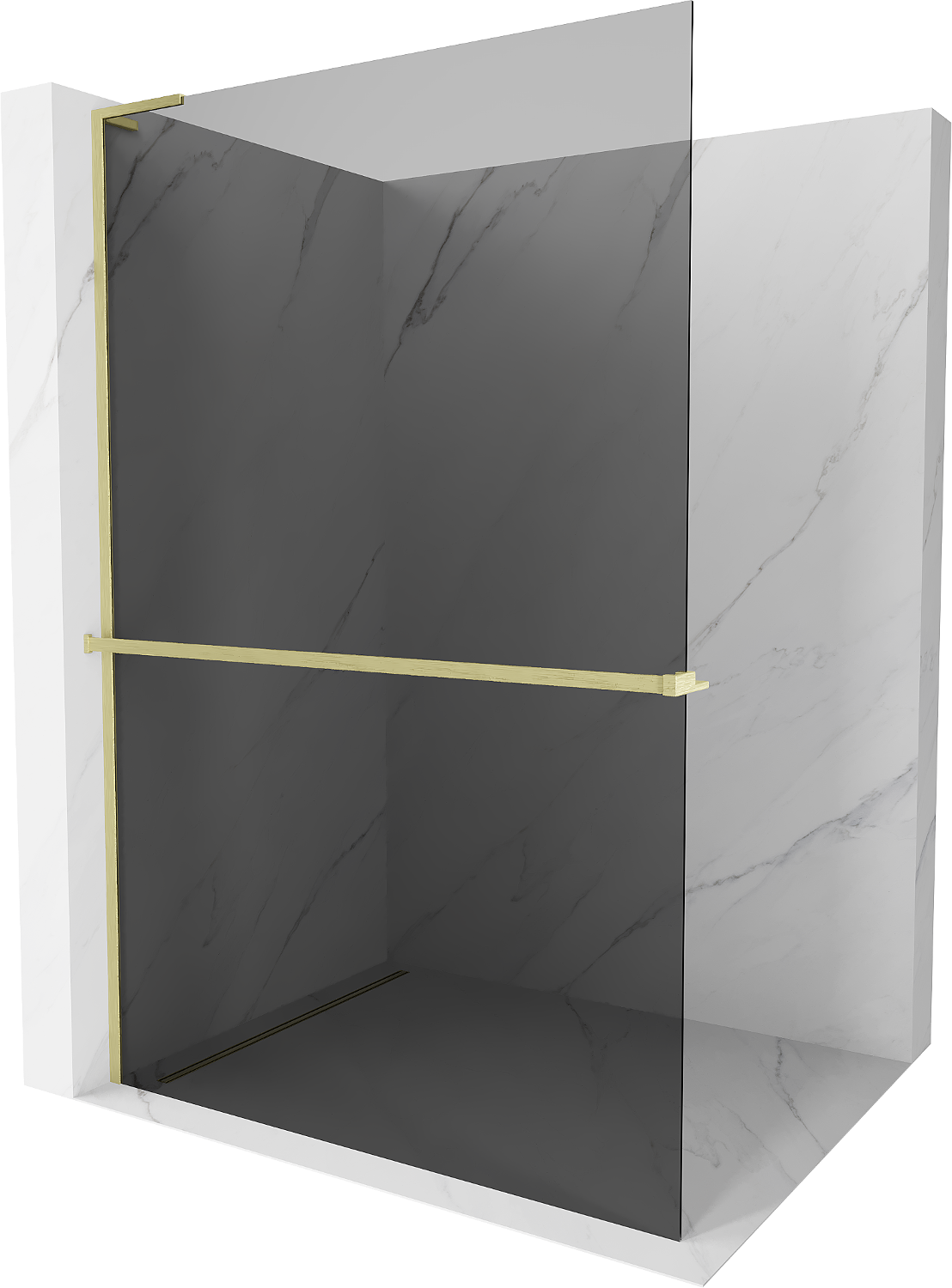 Mexen Kioto+ L zuhanyfal polccal Walk-in 110 x 200 cm, grafit, arany kefélt - 800-110-123-55-40