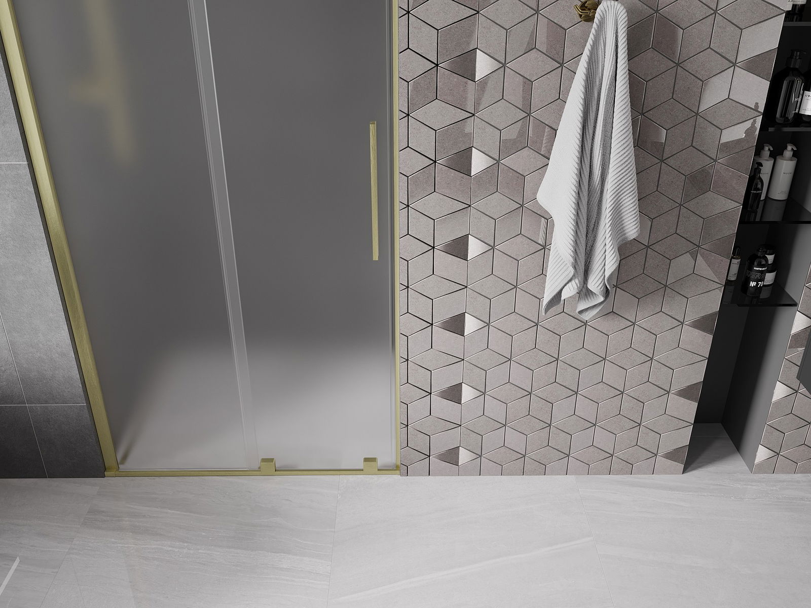 Mexen Velar toló zuhanyajtó 110 cm, zúzott jég, arany szálcsiszolt - 871-110-000-31-55
