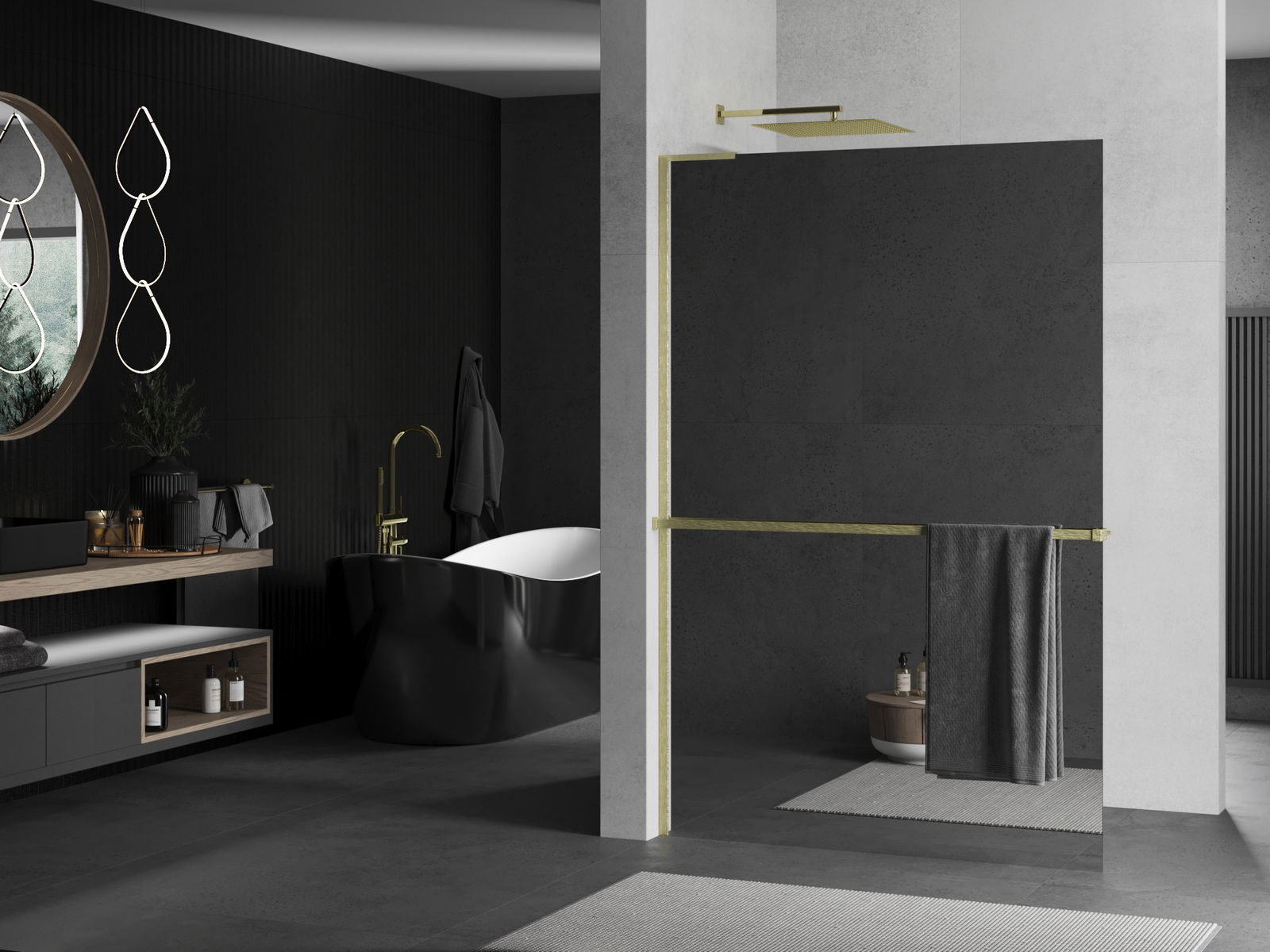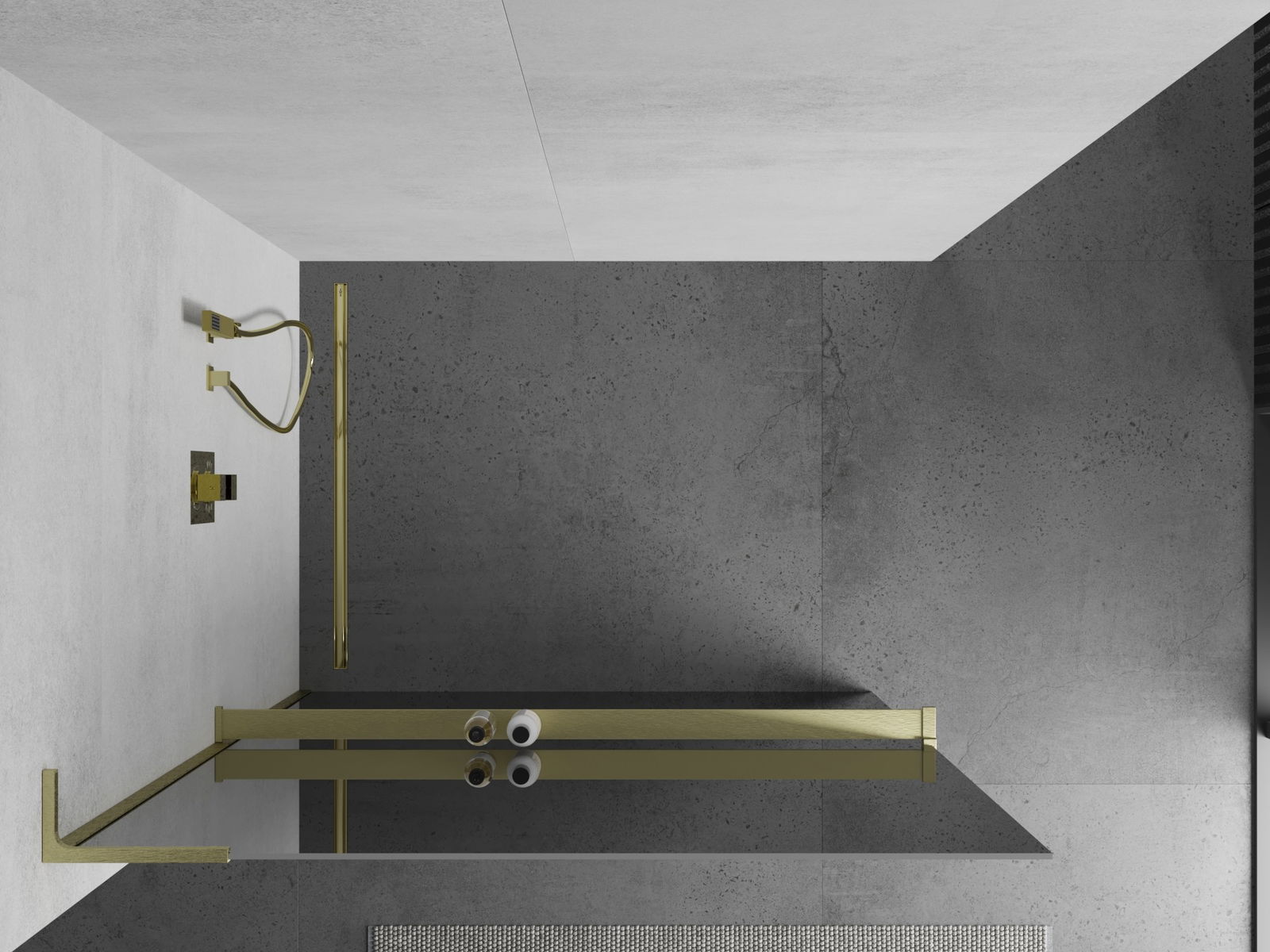 Mexen Kioto+ L zuhanyfal polccal Walk-in 80 x 200 cm, tükör, arany kefe - 800-080-123-55-50