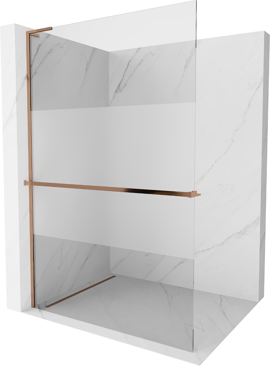 Mexen Kioto+ L zuhanyfal polccal Walk-in 90 x 200 cm, átlátszó/jégvirág, rózsaarany - 800-090-123-60-35