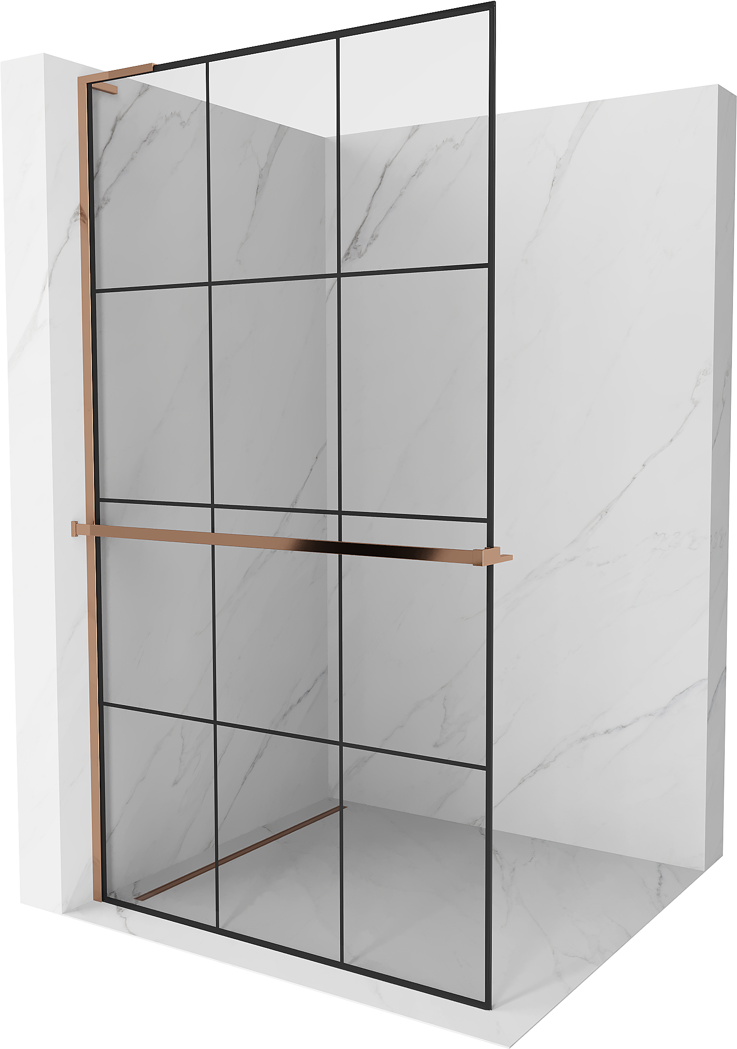 Mexen Kioto+ L zuhanyfal polccal Walk-in 110 x 200 cm, fekete rács, rózsaarany - 800-110-123-60-77